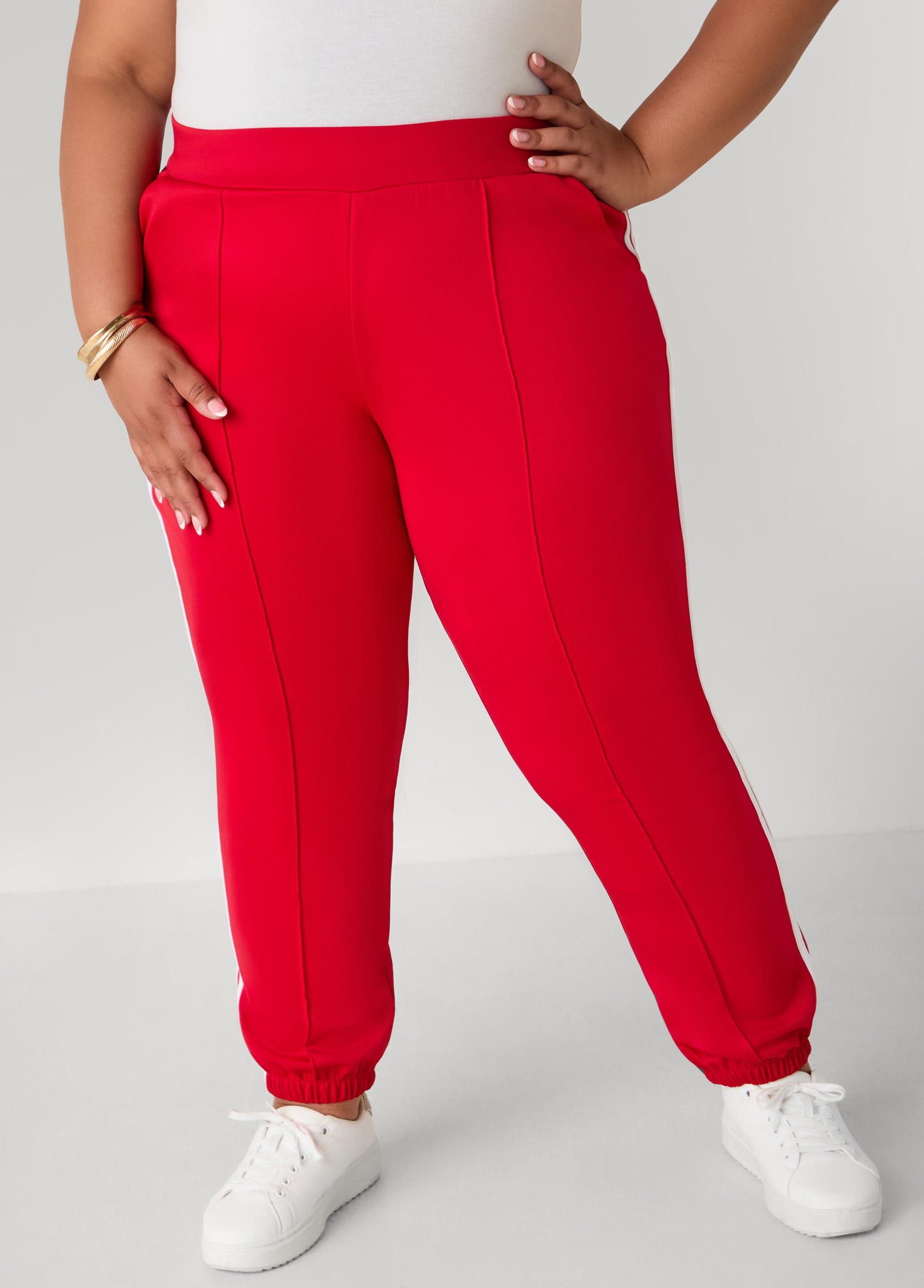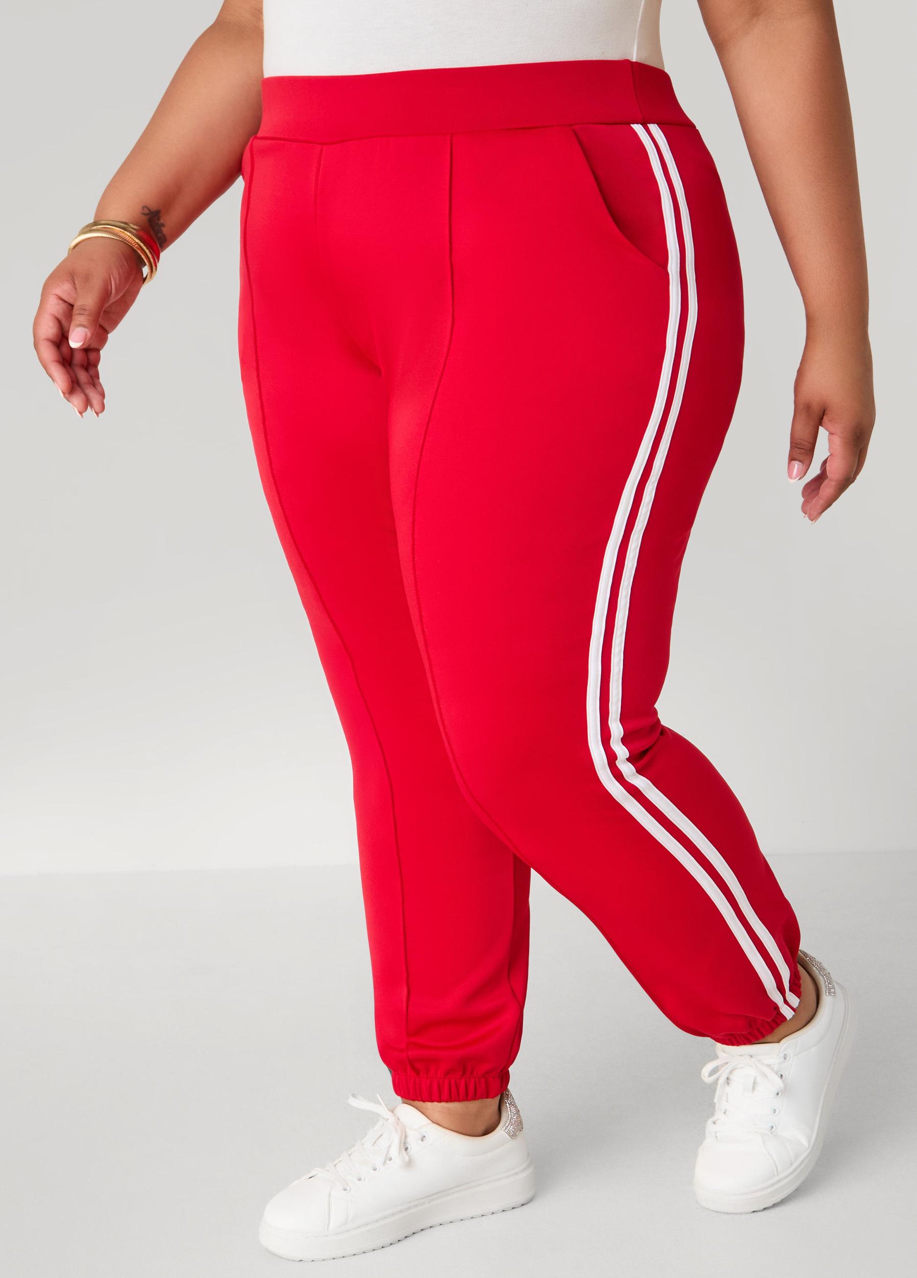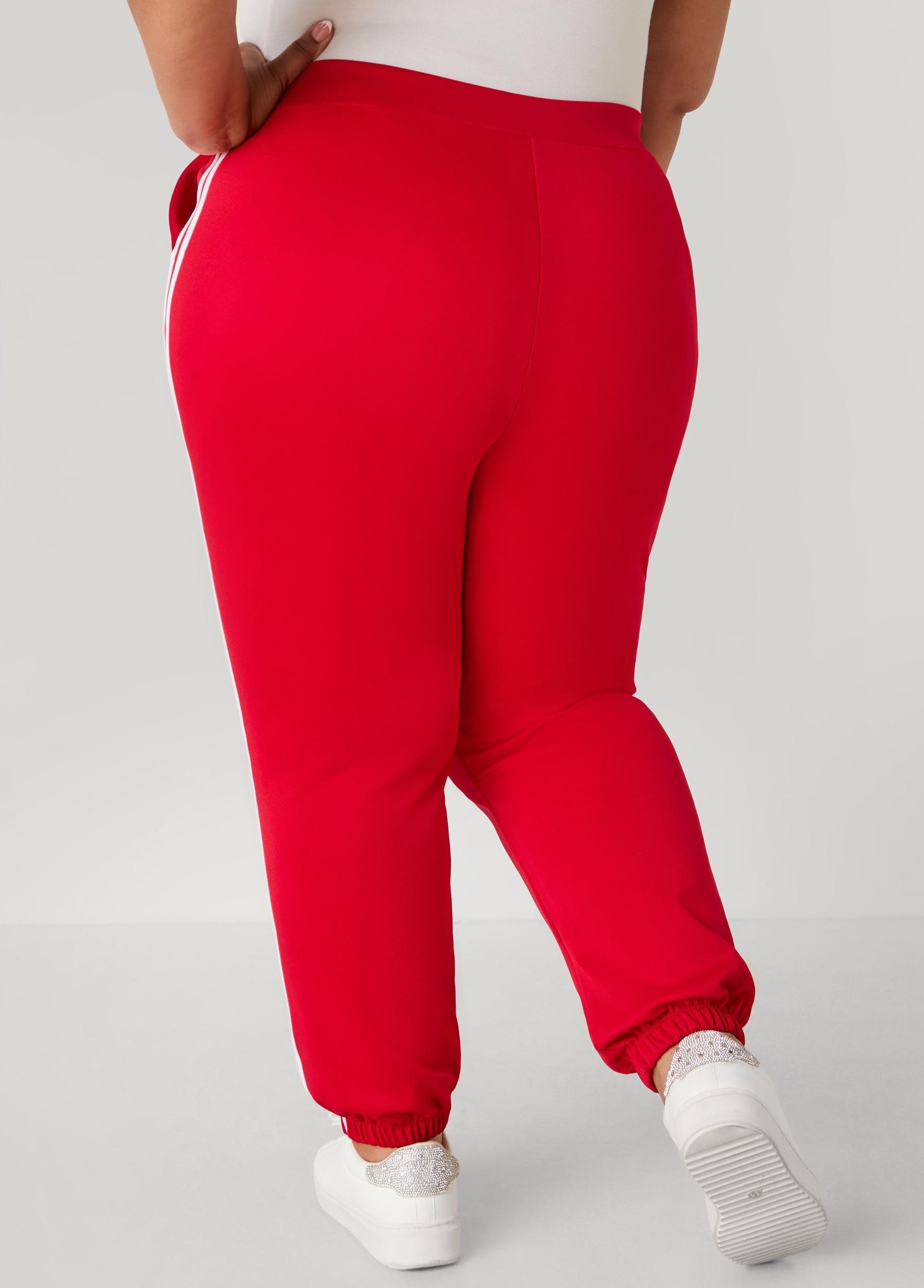 Red Contrast Stripe Detail Wide Leg Sweatpants