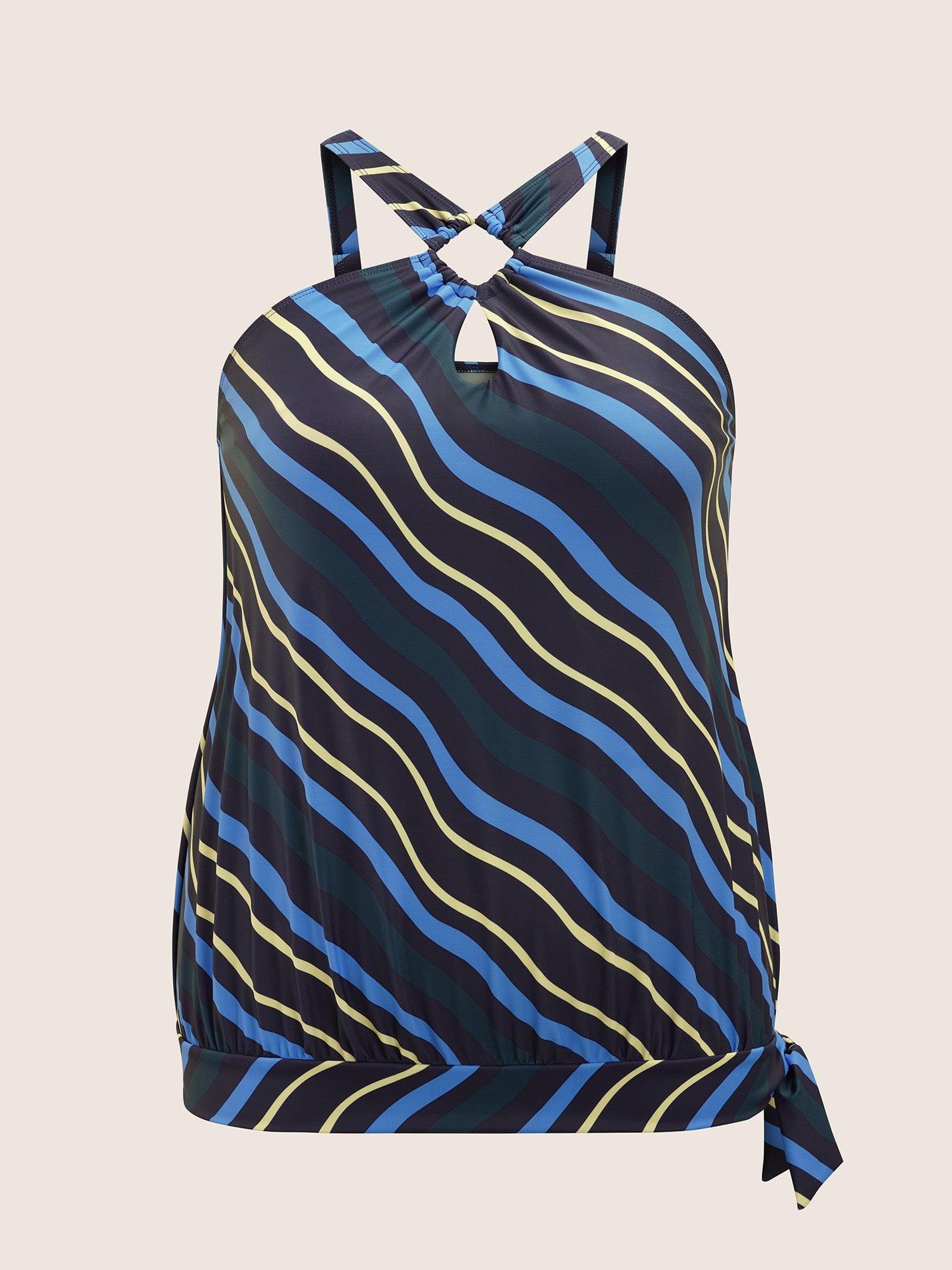 Shop Striped Keyhole Tie Knot Swim Top now and redefine your style with confidence at BloomChic. Tailored for mid and plus-size women. This trendy Swimwear Women, sizes 10-30. Season:Summer;Color:Cerulean;Style:Beach;Cup Type:Removable cups;Prints:Stripes;Details:Tie knot, Cut-Out;Pocket:No-pocket;Belt:No-belt;Chest pad:Non-removable padding
