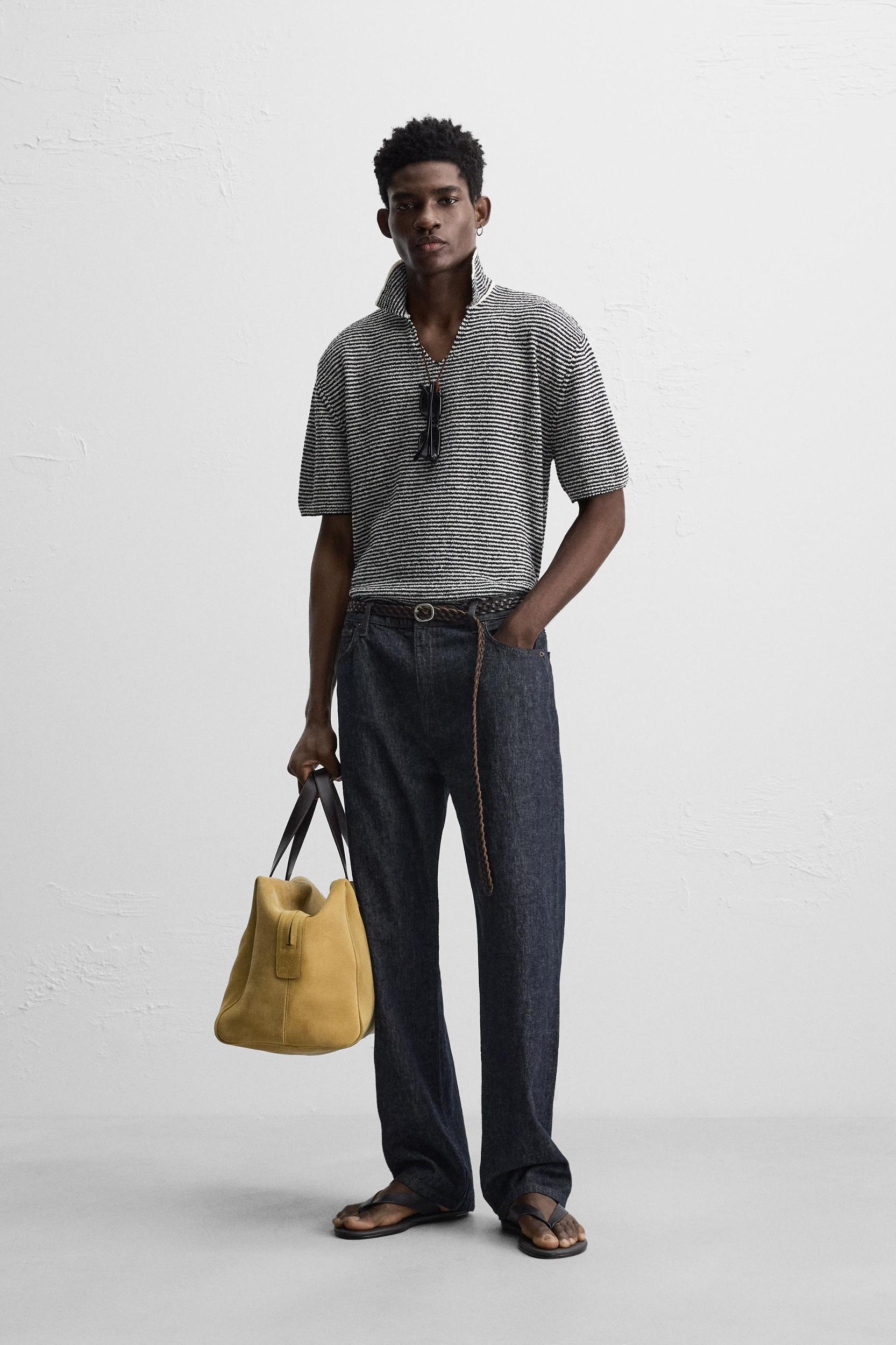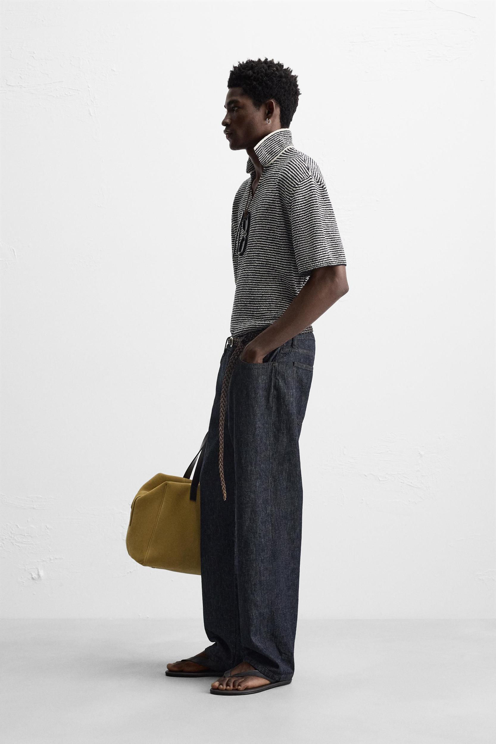 Relaxed fit knit polo shirt. Lapel collar with front opening. Short sleeves. Ribbed trim.
