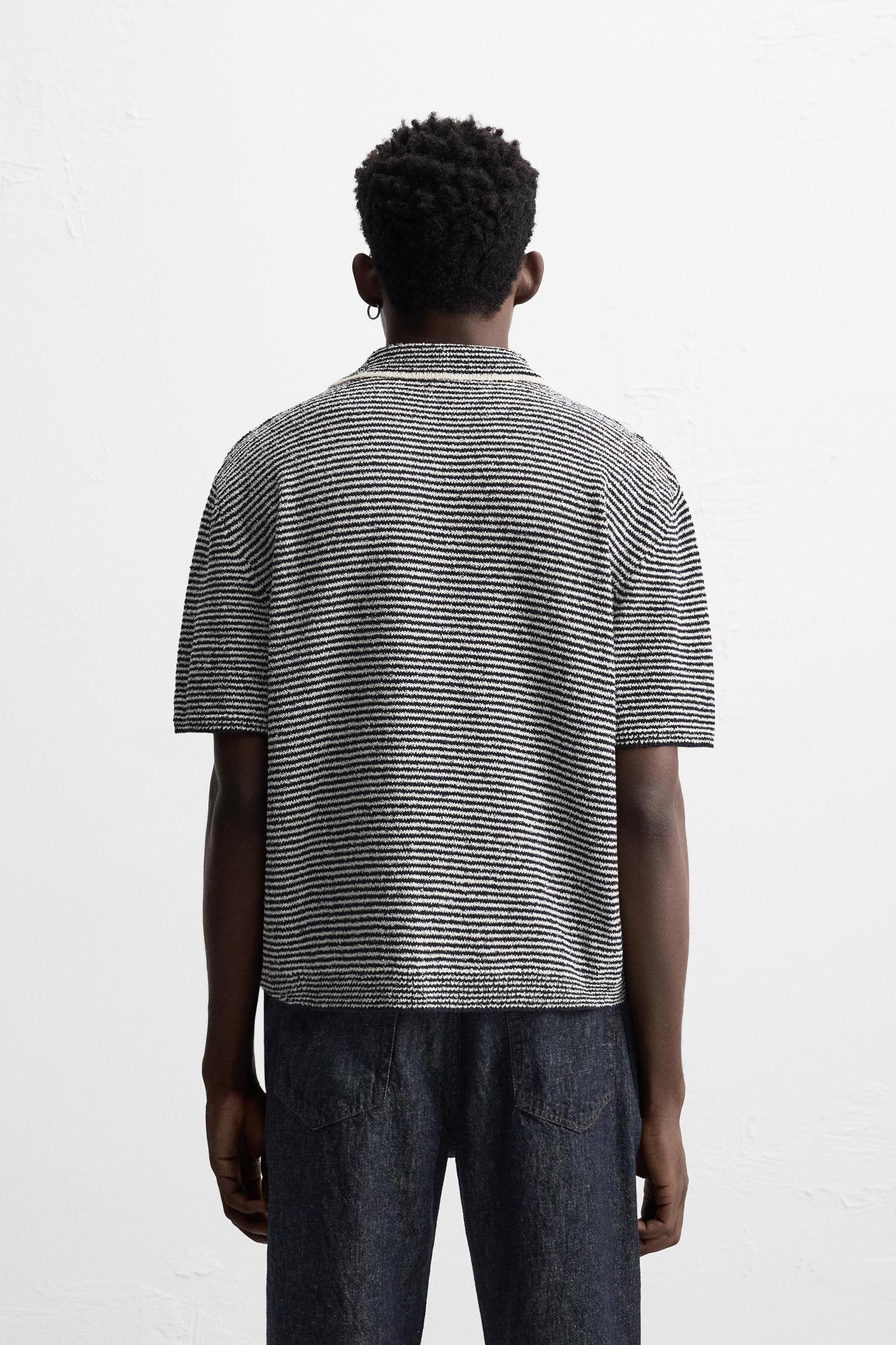 STRIPED DOUBLE-FACED KNITTED POLO SHIRT