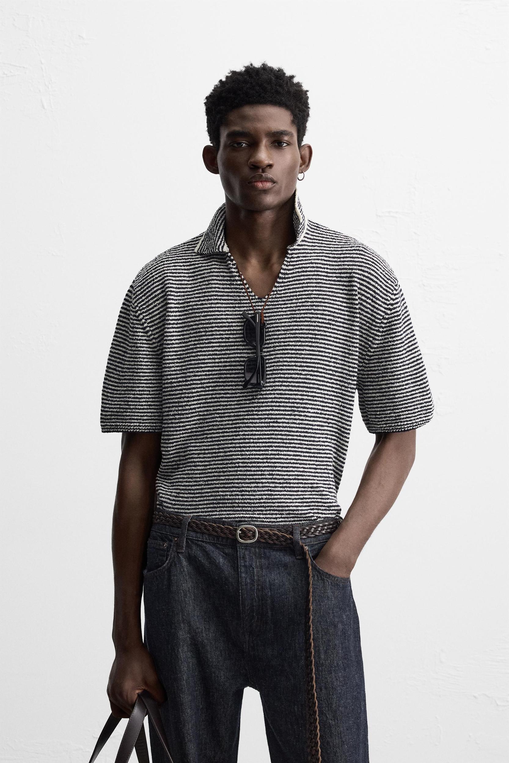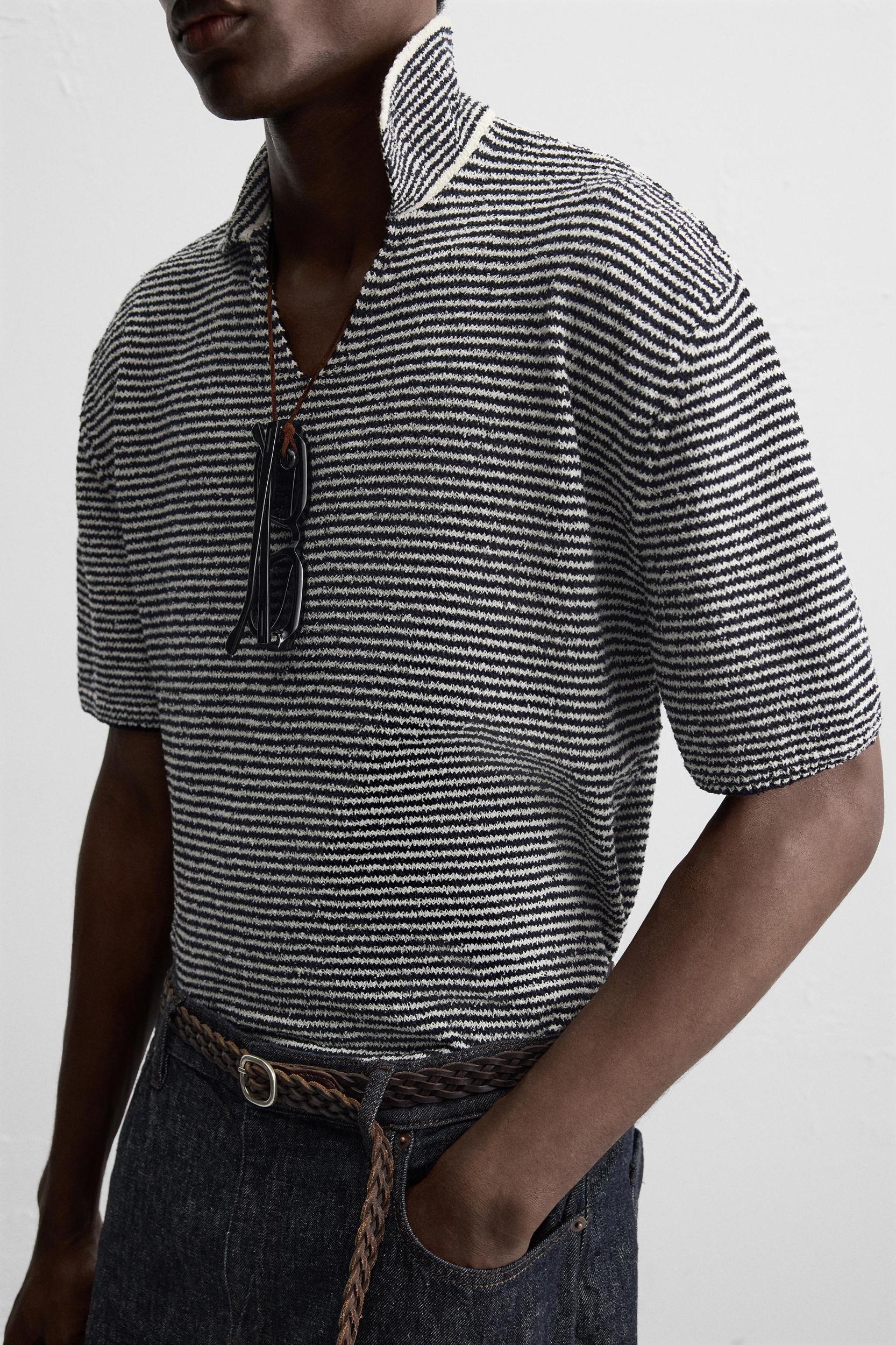 STRIPED KNIT POLO SHIRT