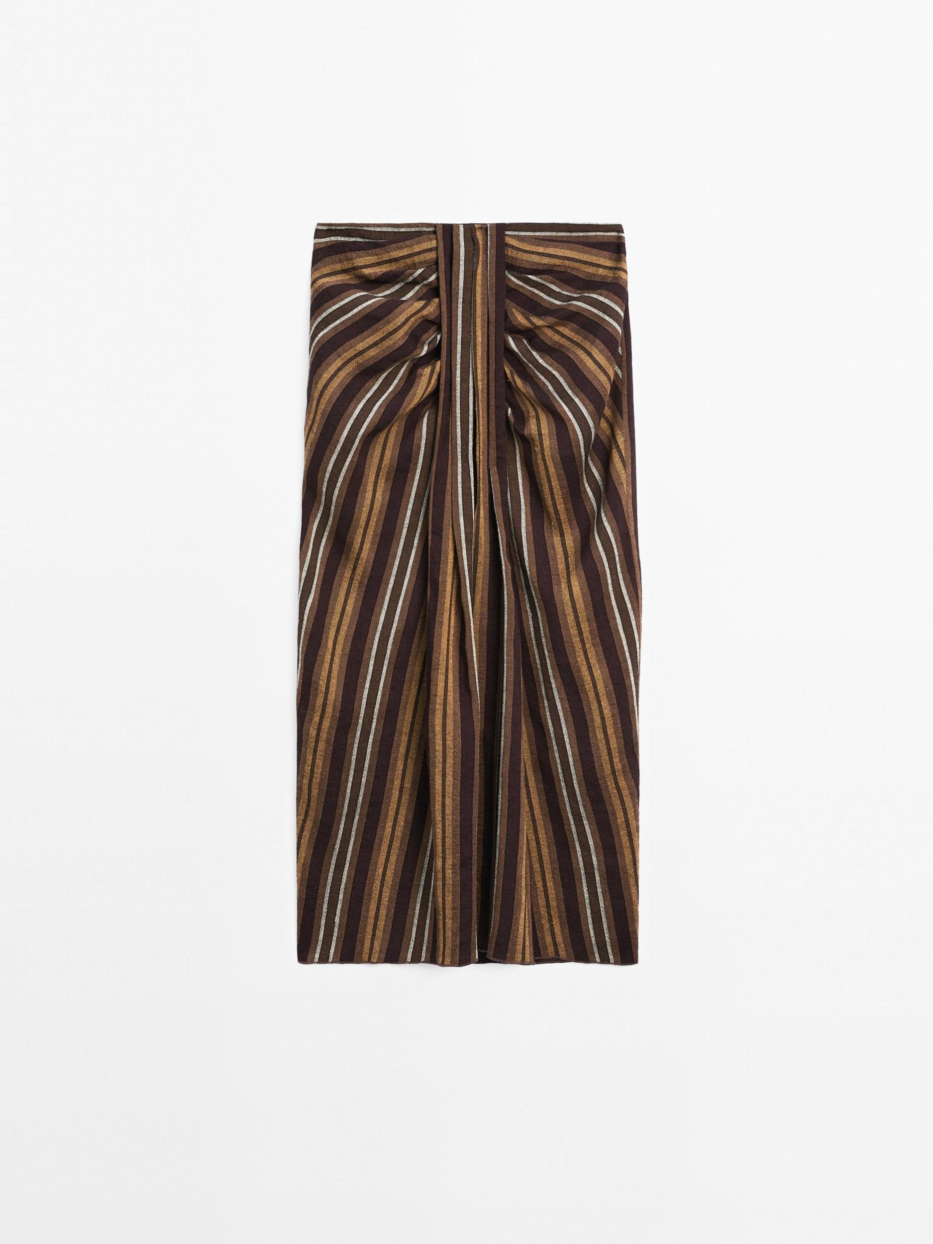 Midi skirt made of linen fabric, Zip fastening at the back, Striped print, Matching garment available