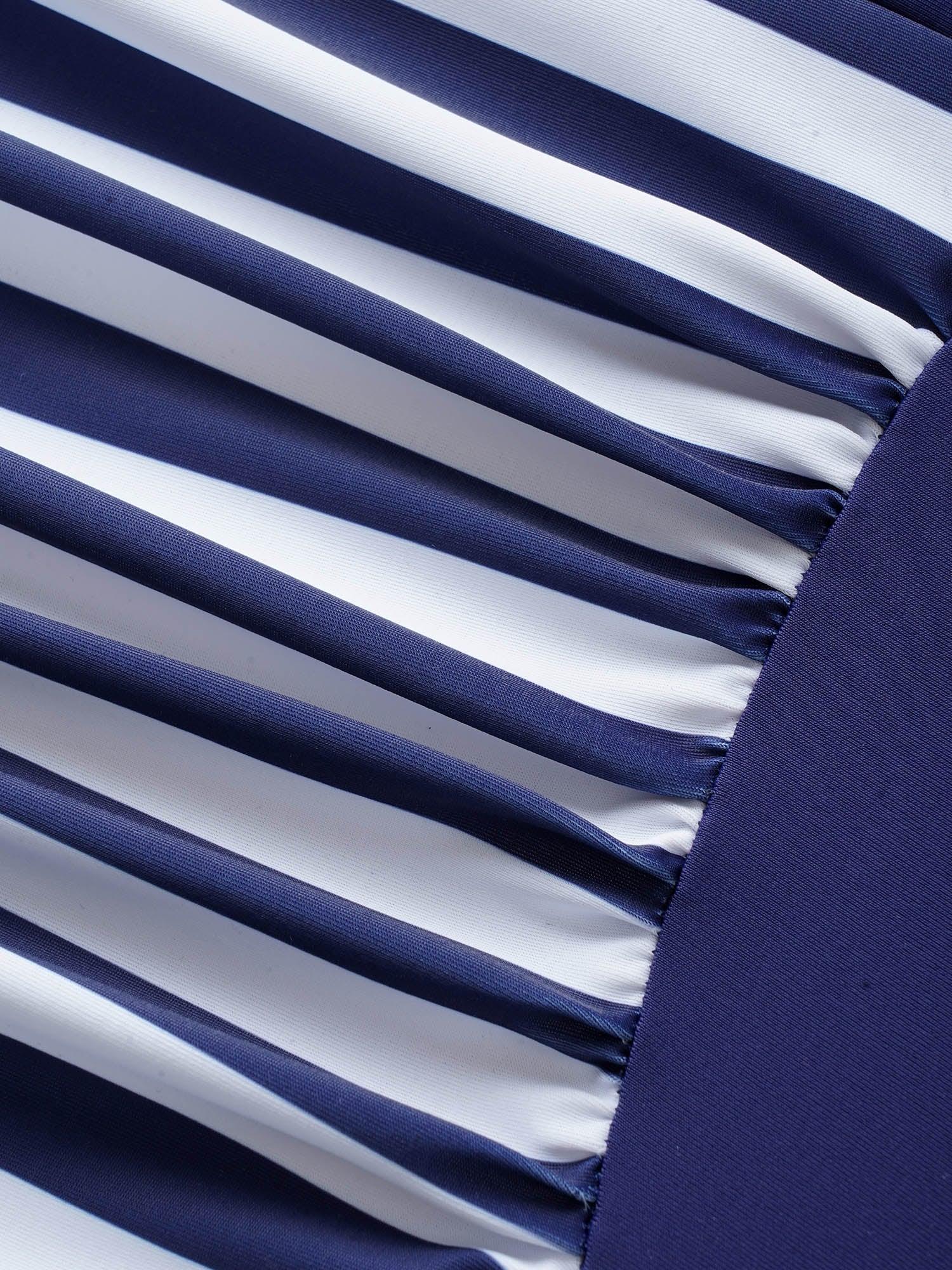 Shop Striped Patchwork Crossover One Piece Swimsuit now and redefine your style with confidence at BloomChic. Tailored for mid and plus-size women. This trendy Swimwear Women, sizes 10-30. Season:Summer;Color:Indigo;Style:Beach Vacation;Cup Type:Removable cups;Neckline:Heart neckline;Sleeve Type:Sleeveless;Prints:Stripes;Details:Twist, Gathered, Patchwork;Pocket:No-pocket;Belt:No-belt;Chest pad:Removable Padding;Lining:Lining;Closure Type:Non