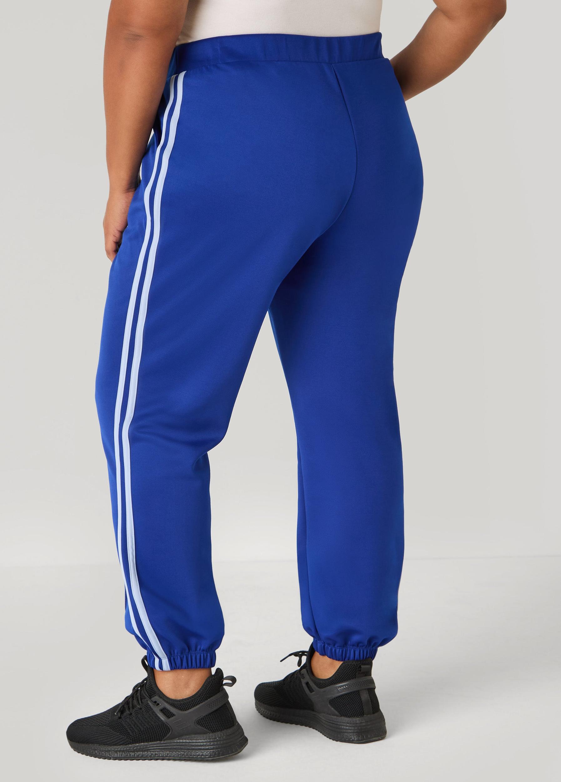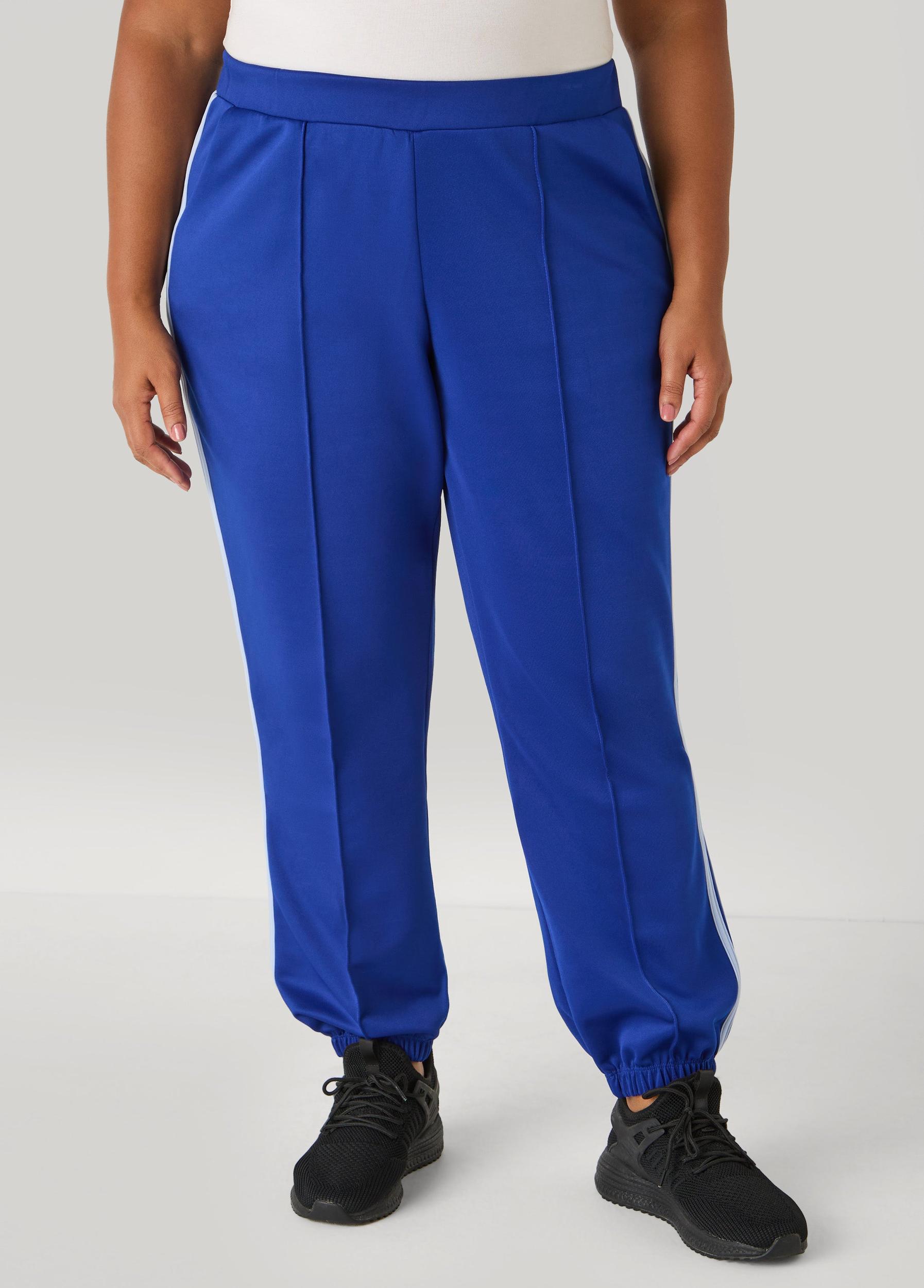 Blue on blue is the calling card for these joggers with striped trims keeping it sassy & pintucks showing off the details you actually notice. Slide into the stretch-knit, hands in the pockets, match with the jacket and suddenly you’re the vibe everyone’s trying to catch.