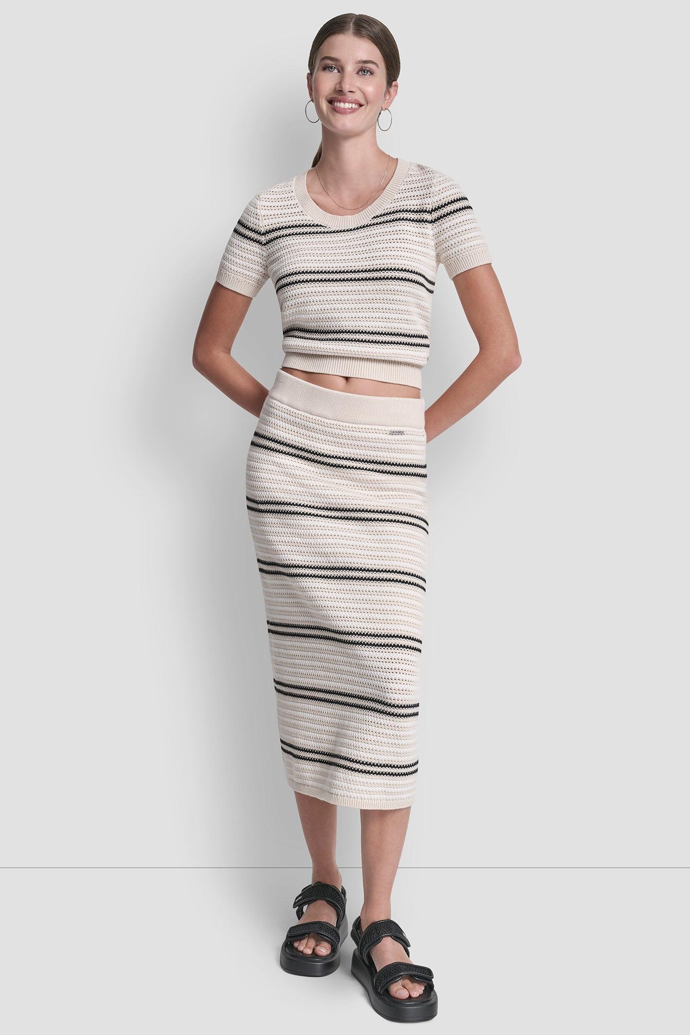 STRIPED POINTELLE STITCH MIDI SKIRT