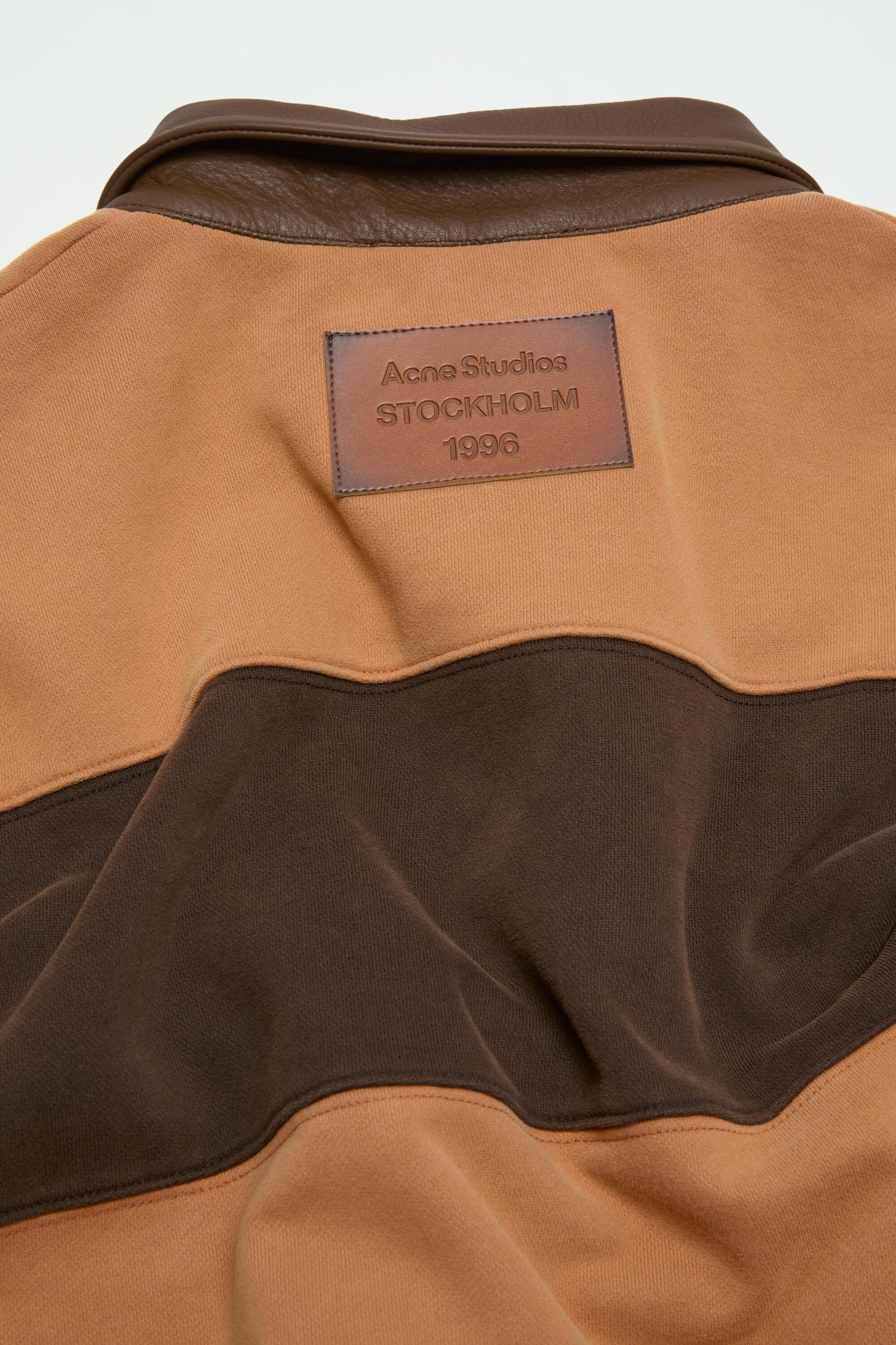 Sweatshirt with a leather polo neck crafted from organic cotton fleece with an acid-wash treatment for a vintage look. Designed with contrasting stripes, a three-button closure, and a gathered hem, and finished with a leather logo patch on the back neckline. Cut to a relaxed fit and below-waist length. FN-WN-SWEA000296