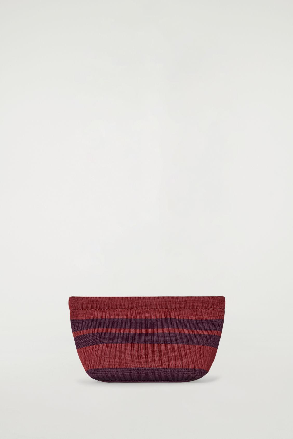 This sportswear-inflected pouch evokes the laid-back ease of summer. Patterned with tonal-red stripes, it's made from a tactile knitted material and features a clip closure to keep your belongings secure. Clip closureA better alternative to conventional polyester, recycled polyester is made from pre‐ and post‐consumer waste Shell: 100% Recycled polyester. Excluding trims Height: 16.5cm, Top width: 30cm, Depth: 10cm