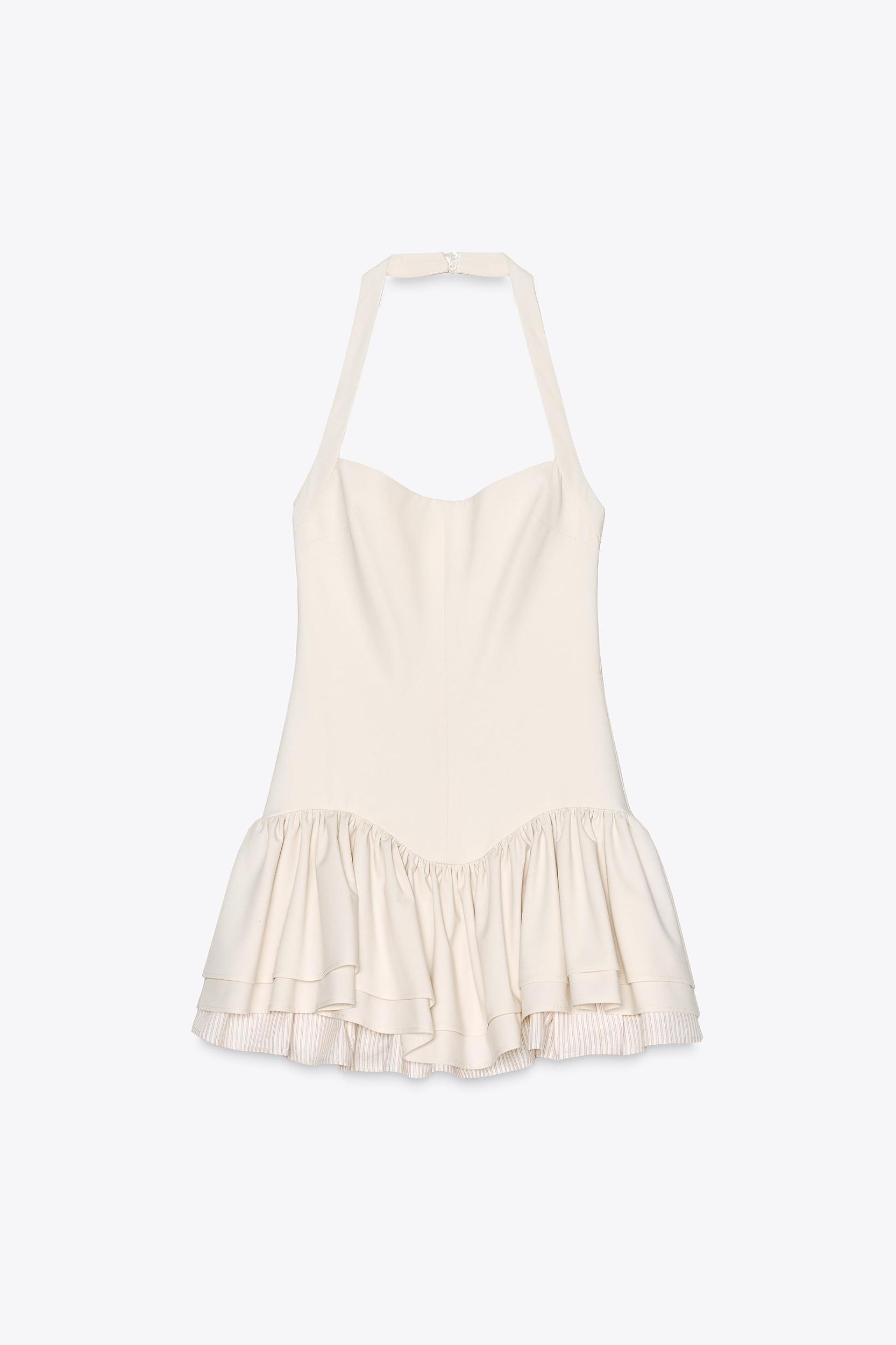 STRIPED RUFFLED HALTER JUMPSUIT DRESS