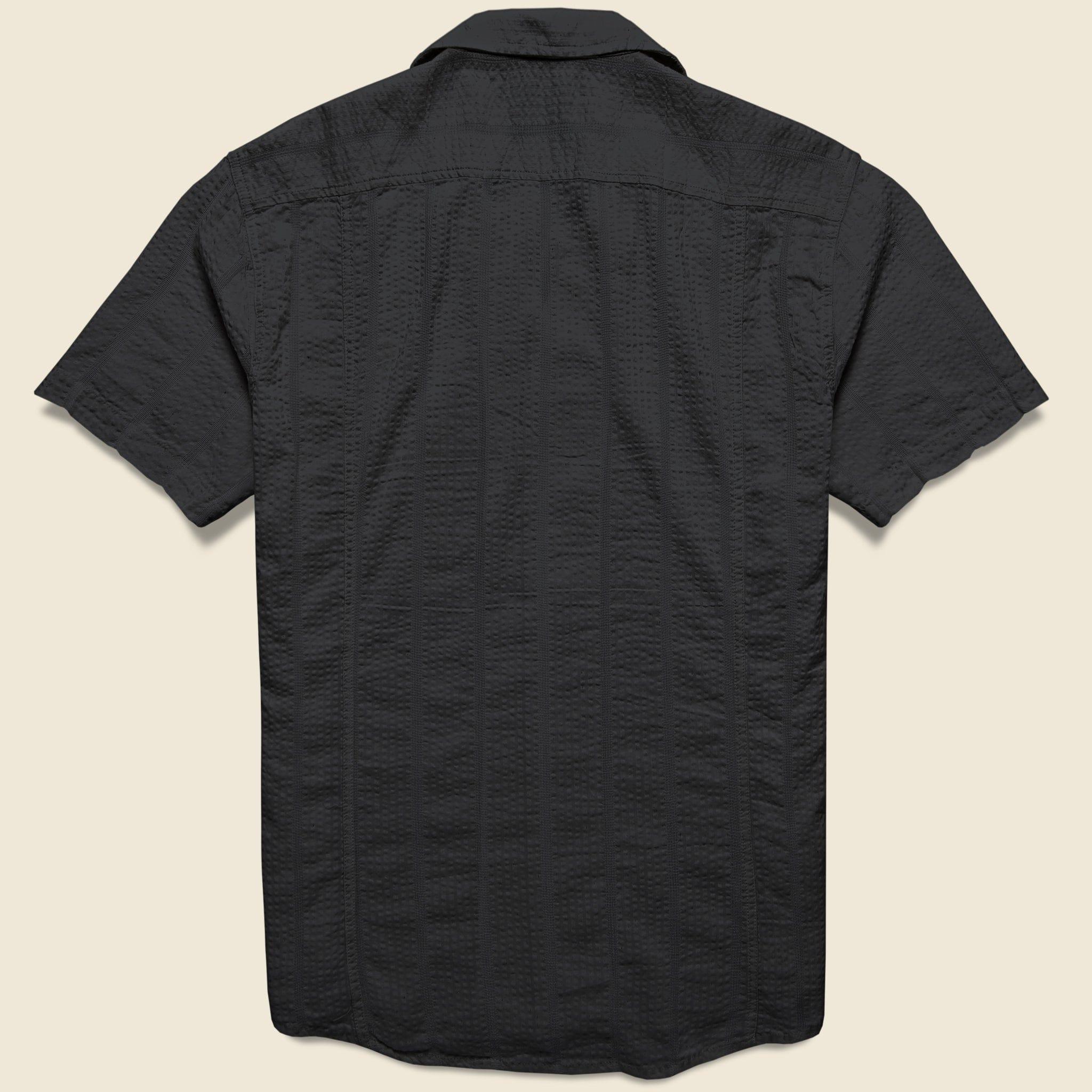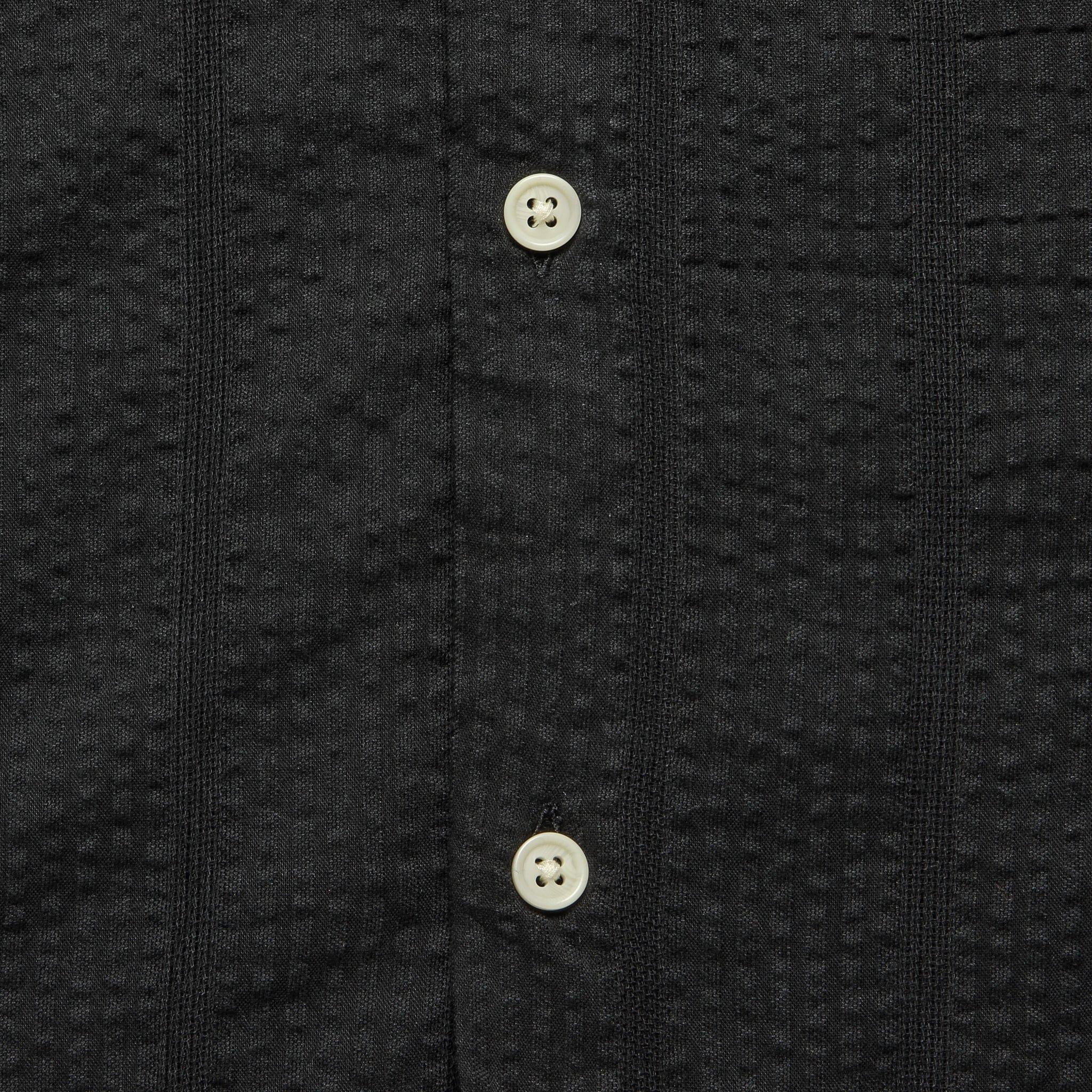 This Striped Seersucker Shirt from New York City-based brand Corridor is made with a custom milled, lightweight, and breezy cotton seersucker that’s woven with a subtle stripe pattern. Great for beachside strolls and BBQs, it’s got a perfectly relaxed fit with modern short sleeves and a single pattern-match chest pocket for a super clean look that’s ready for summer. Lightweight cotton seersucker Subtle woven stripe pattern Pattern-match chest pocket Button placket Slightly curved hem Modern short sleeves Relaxed fit that runs true to size We recommend taking your normal size or taking one size down for a slimmer fit Materials: 60% cotton 40% viscose The following measurements are for size Medium: Chest: 44" | Sleeve: 19” | Shoulder: 18” | Length: 28”