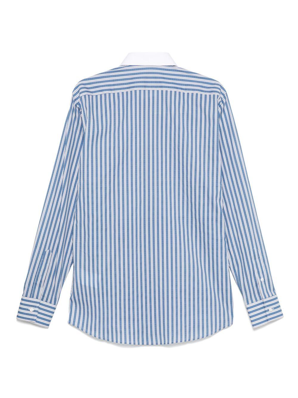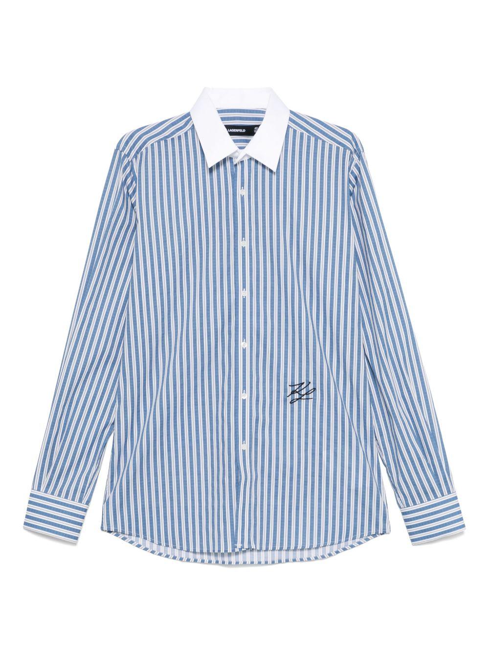 Karl Lagerfeld striped shirt | Blue | steel blue | front button fastening | buttoned-cuff sleeves | embroidered logo to the front | curved hem | Cotton/Elastane | Shirts | Clothing | Men