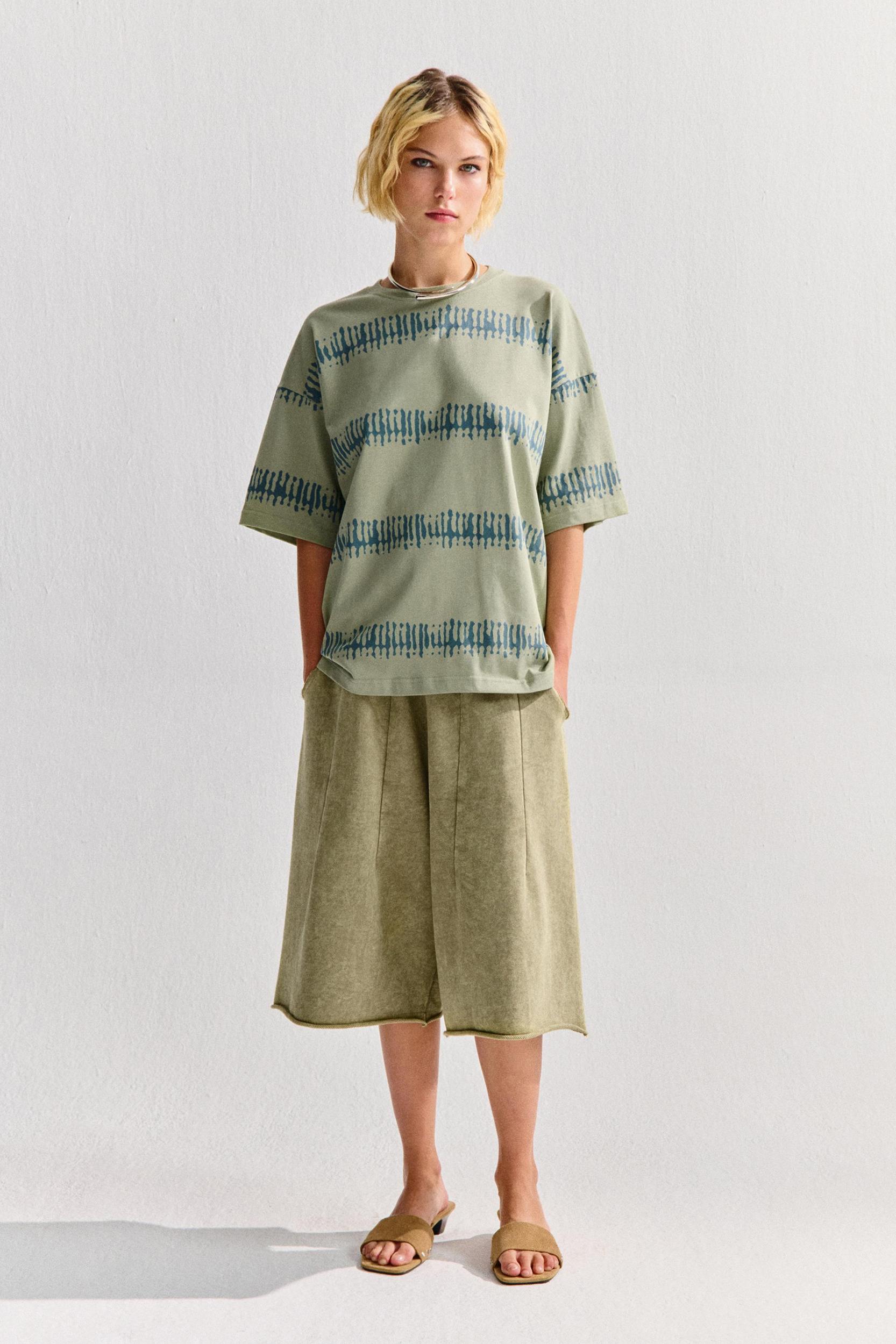 Short sleeve striped T-shirt with a crew neck. Made of cotton.