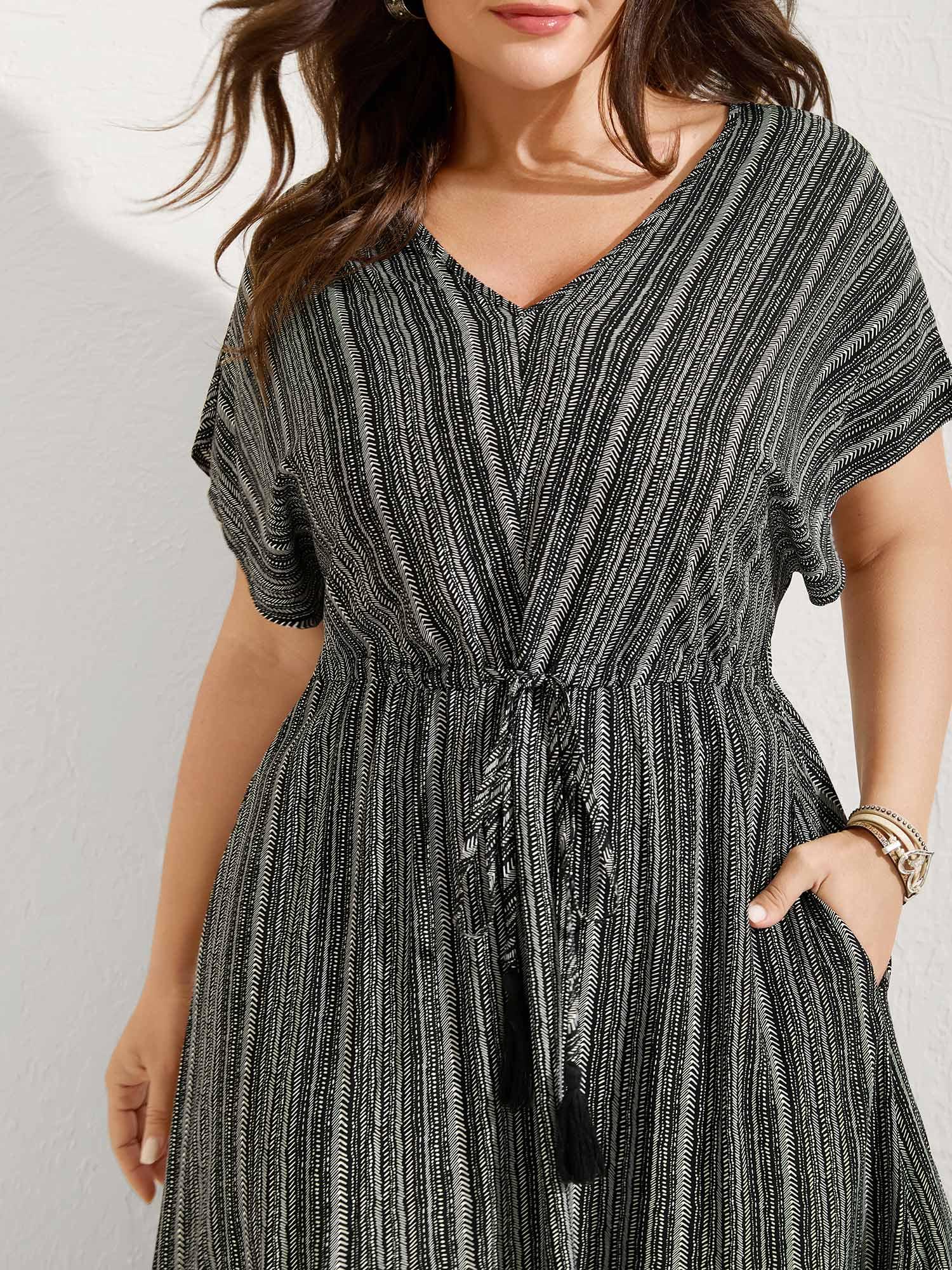 Shop Striped Tassel Drawstring Tiered Midi Dress at BloomChic. Plus Size Clothing & Plus Size Daily Dresses. BloomChic is a digital-first fashion and lifestyle destination for modern women sizes 10-30.