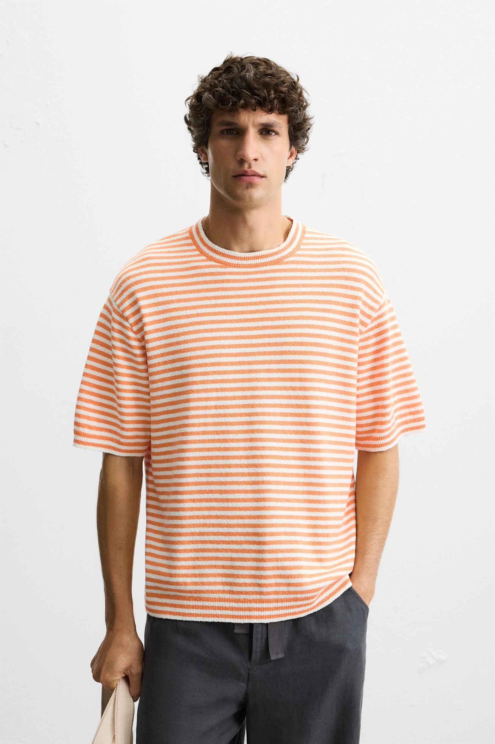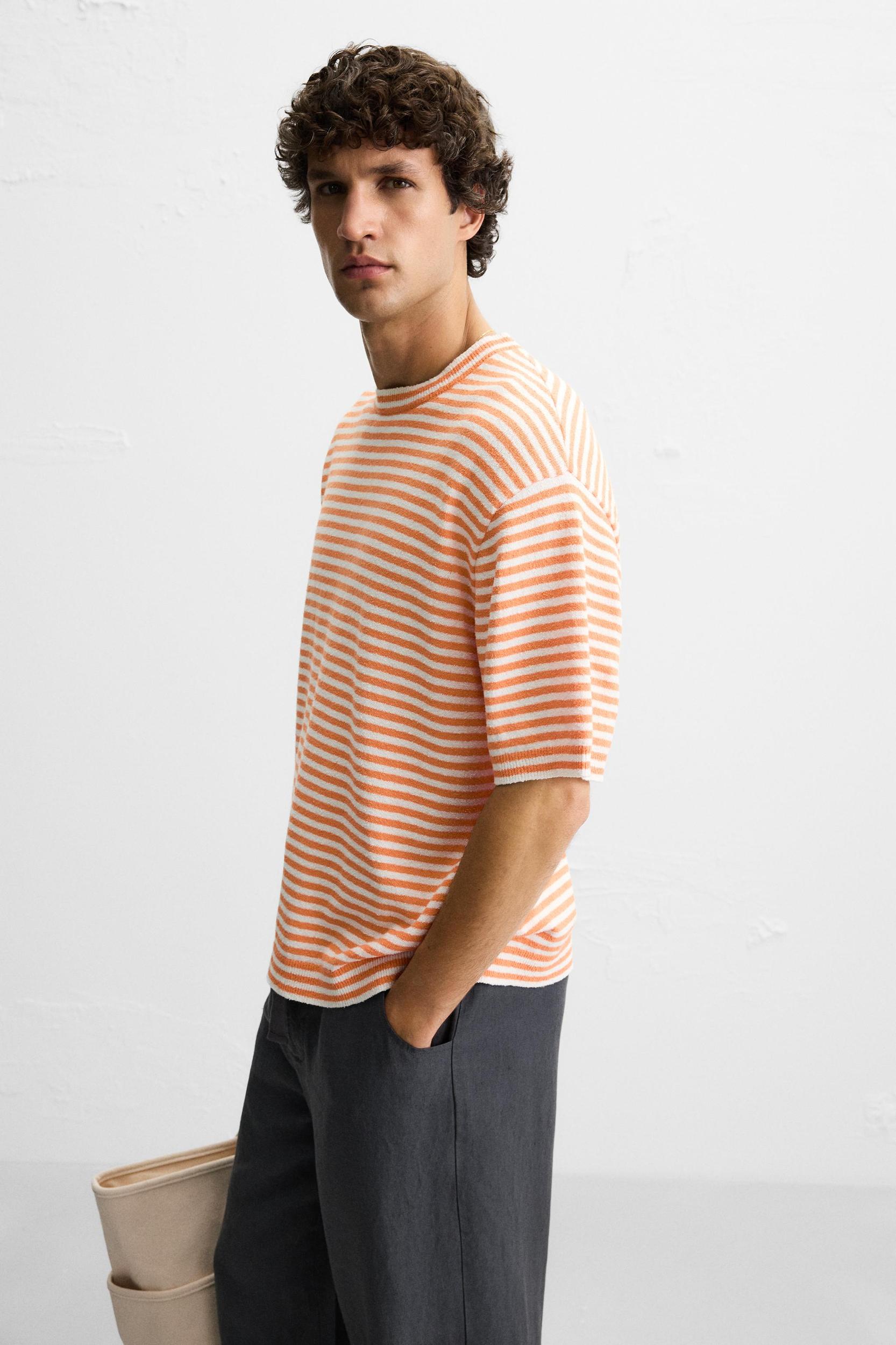 STRIPED TEXTURED KNIT T-SHIRT