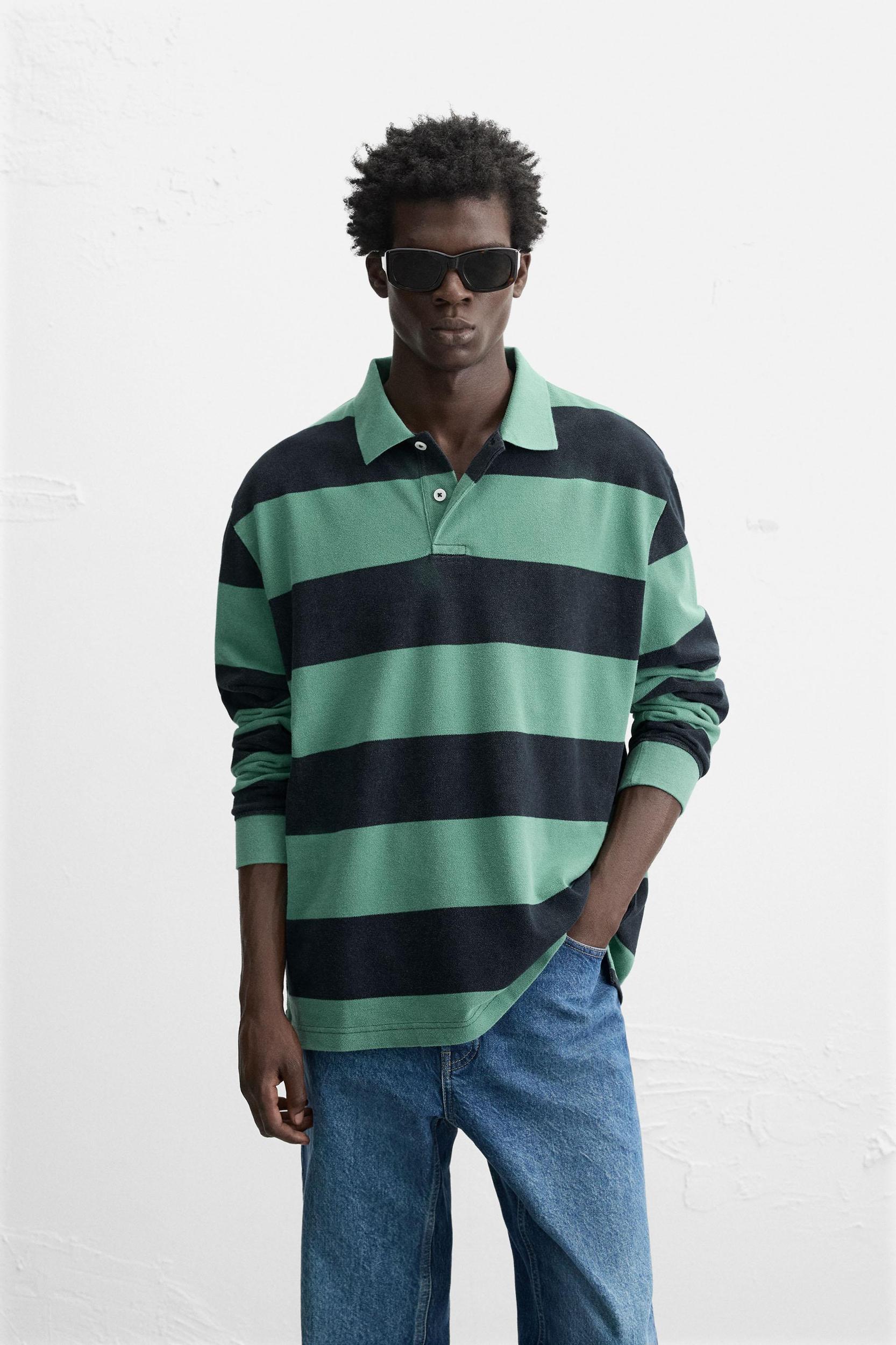 Regular fit polo shirt. Lapel collar with front button closure. Long sleeves. Washed effect. The garment has a unique appearance thanks to its special washing process. For this reason, it may differ slightly in color from the photo.