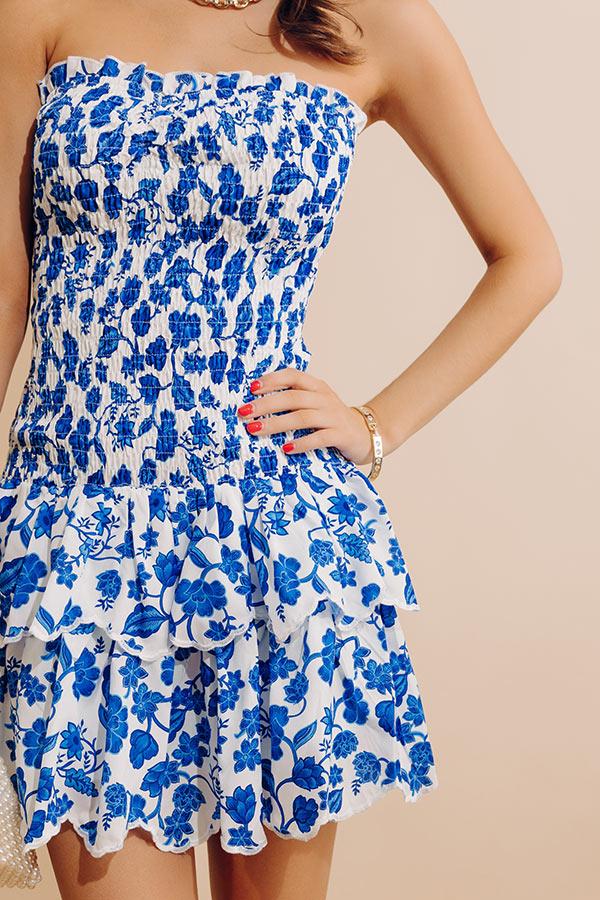 - Step into your flirty feels with this ruched mini dress. The tiered design and scalloped trim add just the right touch of charm.