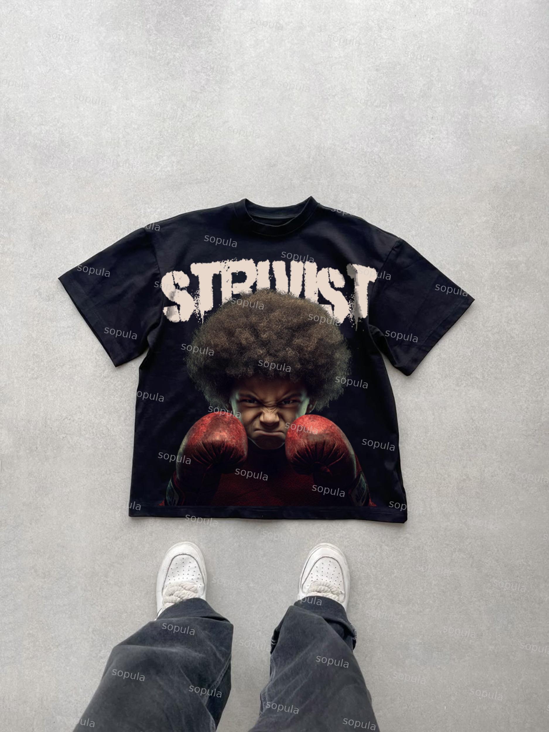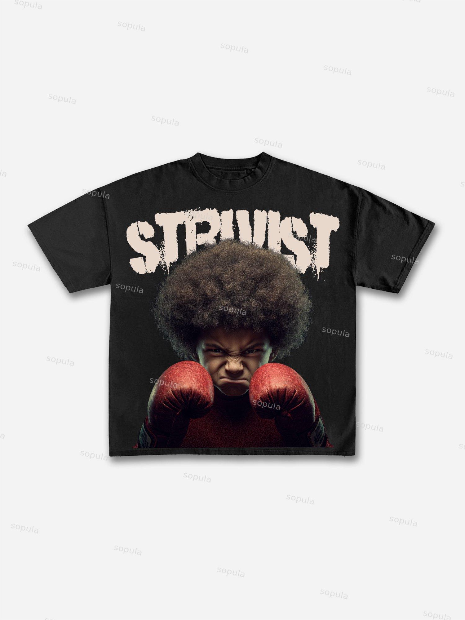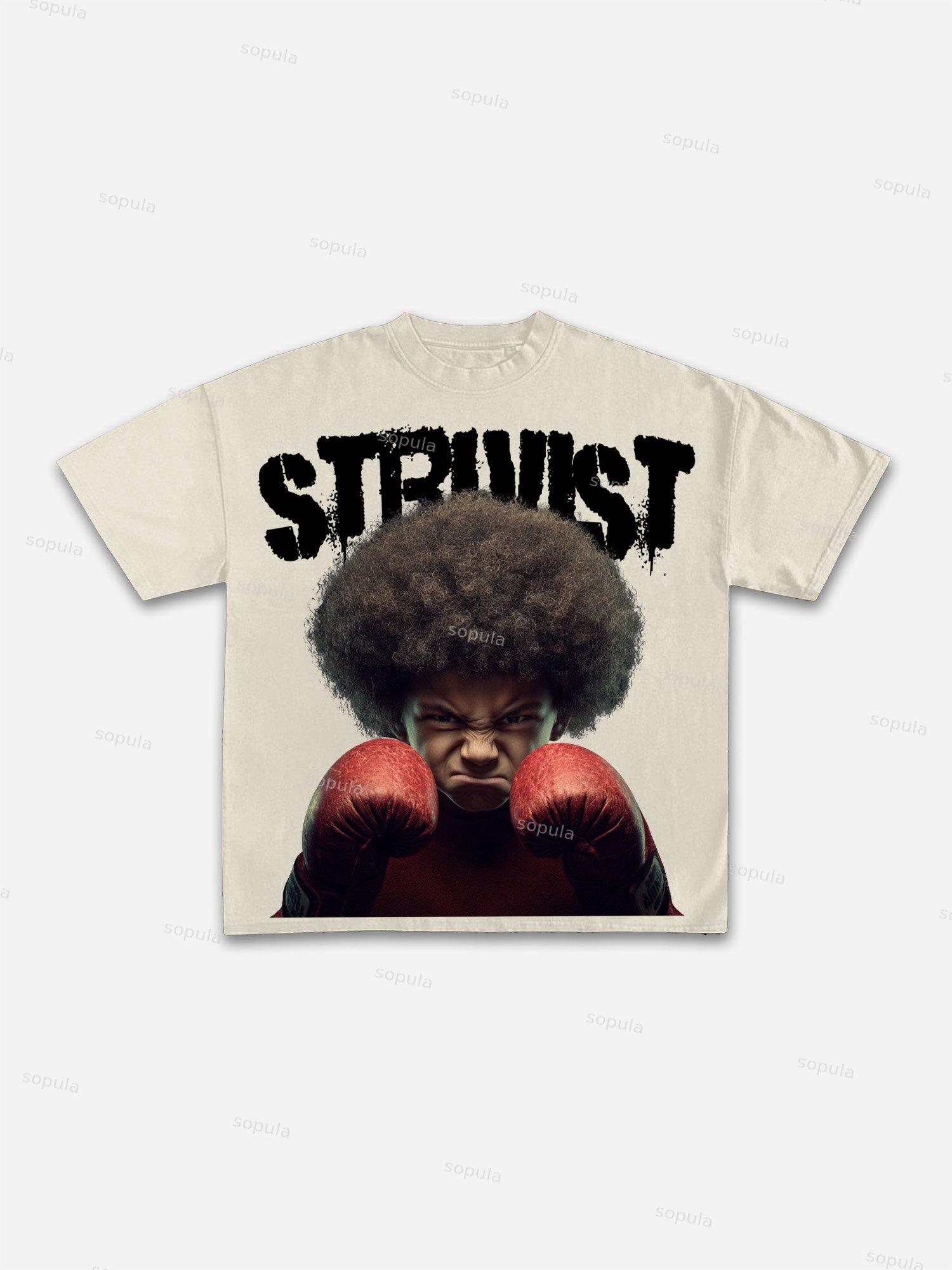 Struggleist Explosive Hairstyles Boxer Vintage Graphic Cotton T-shirt
