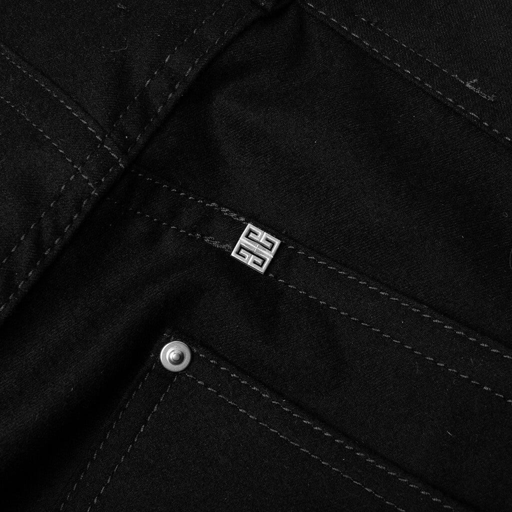 Luxury brand Givenchy introduces the Studded Carpenter Pants. This elevated silhouette offers a sleek black design with silver rivets and has a straight leg. The five-pocket design and the hook and zip closure complete the look. 100% Cotton Denim construction Silver rivets Five-pocket design Straight leg Style No: BM51CR14XM001
