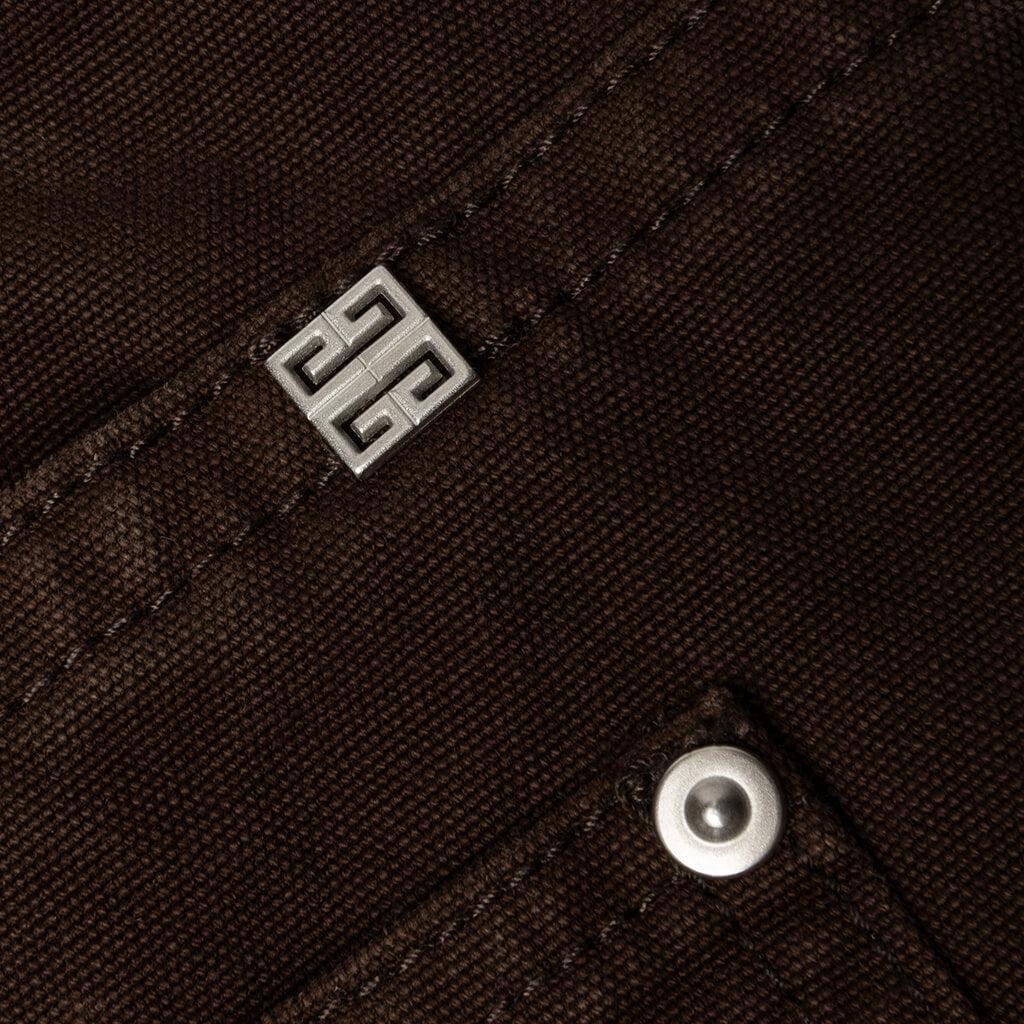 Luxury brand Givenchy introduces the Carpenter Denim Trousers. This elevated silhouette offers a sleek design with silver rivets and has a straight leg. The five-pocket design and the hook and zip closure complete the look. 100% Cotton Denim construction Silver rivets Five-pocket design Straight leg Style No: BM51CR5Y8D201