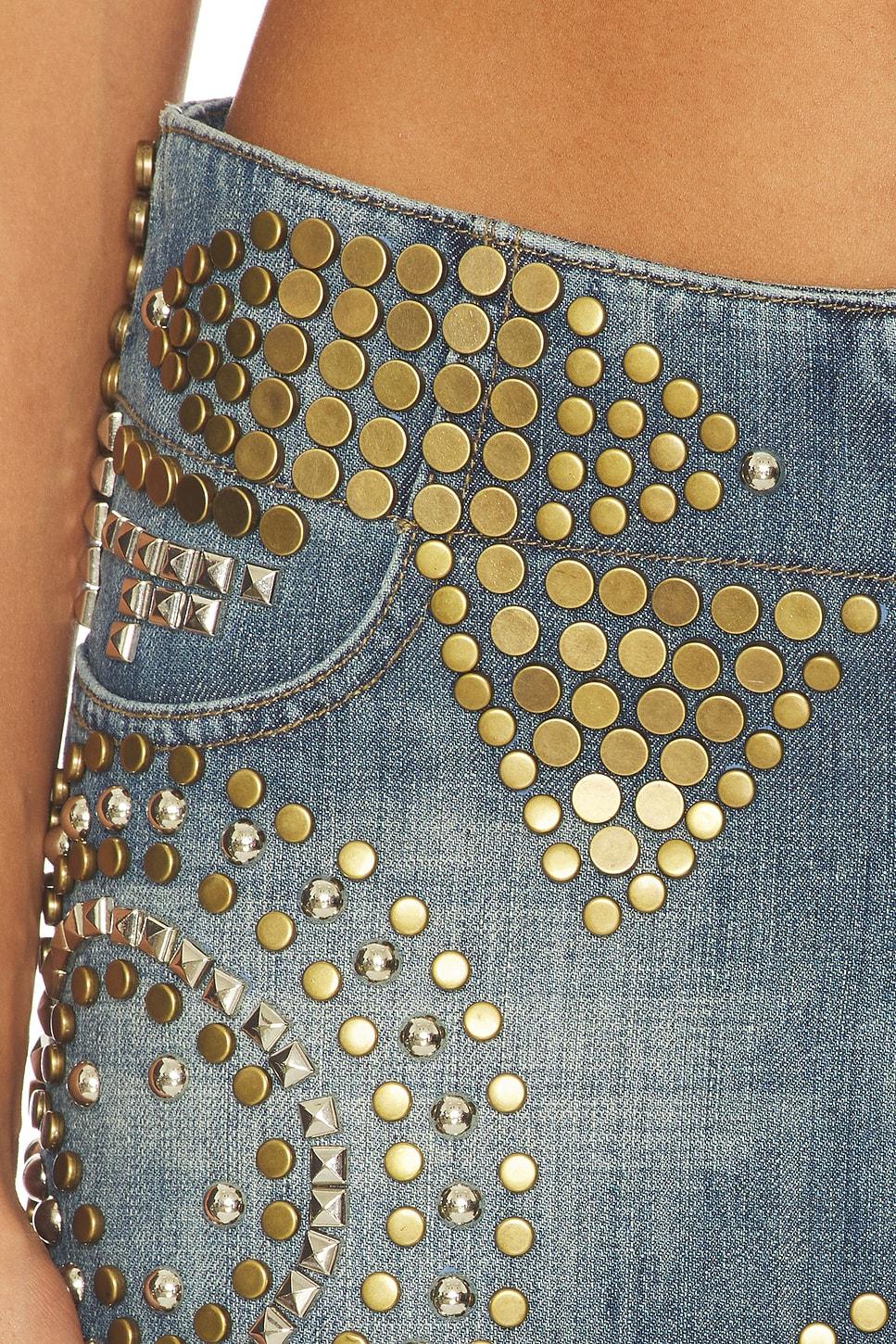 Self: 100% cottonLining: 100% polyesterTrim: 100% plastic. Made in China. Dry clean. Unlined. Stud details throughout. Rigid denim fabric. 4-pocket design. Skirt measures approx 10.5" in length. Revolve Style No. JLON-WQ47. Manufacturer Style No. JWS5386.