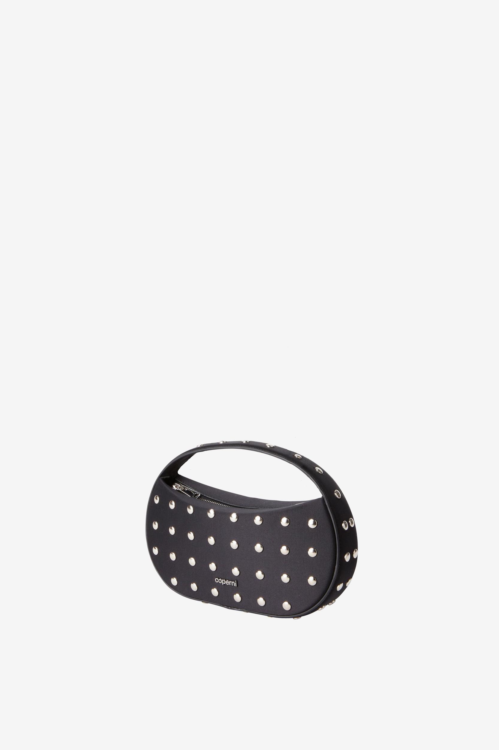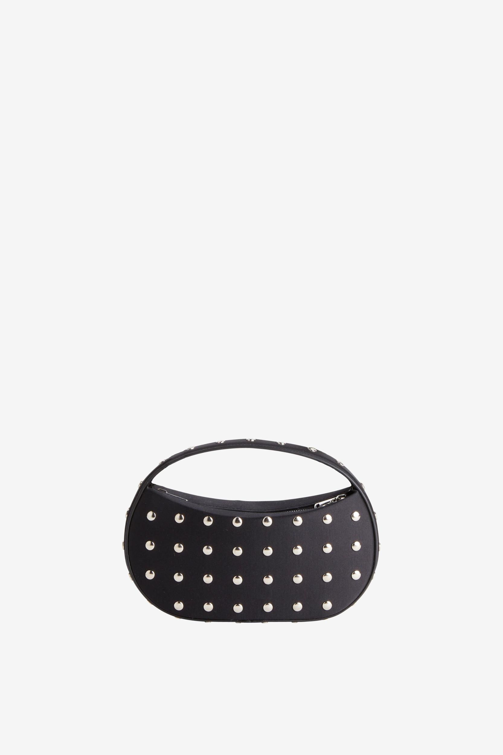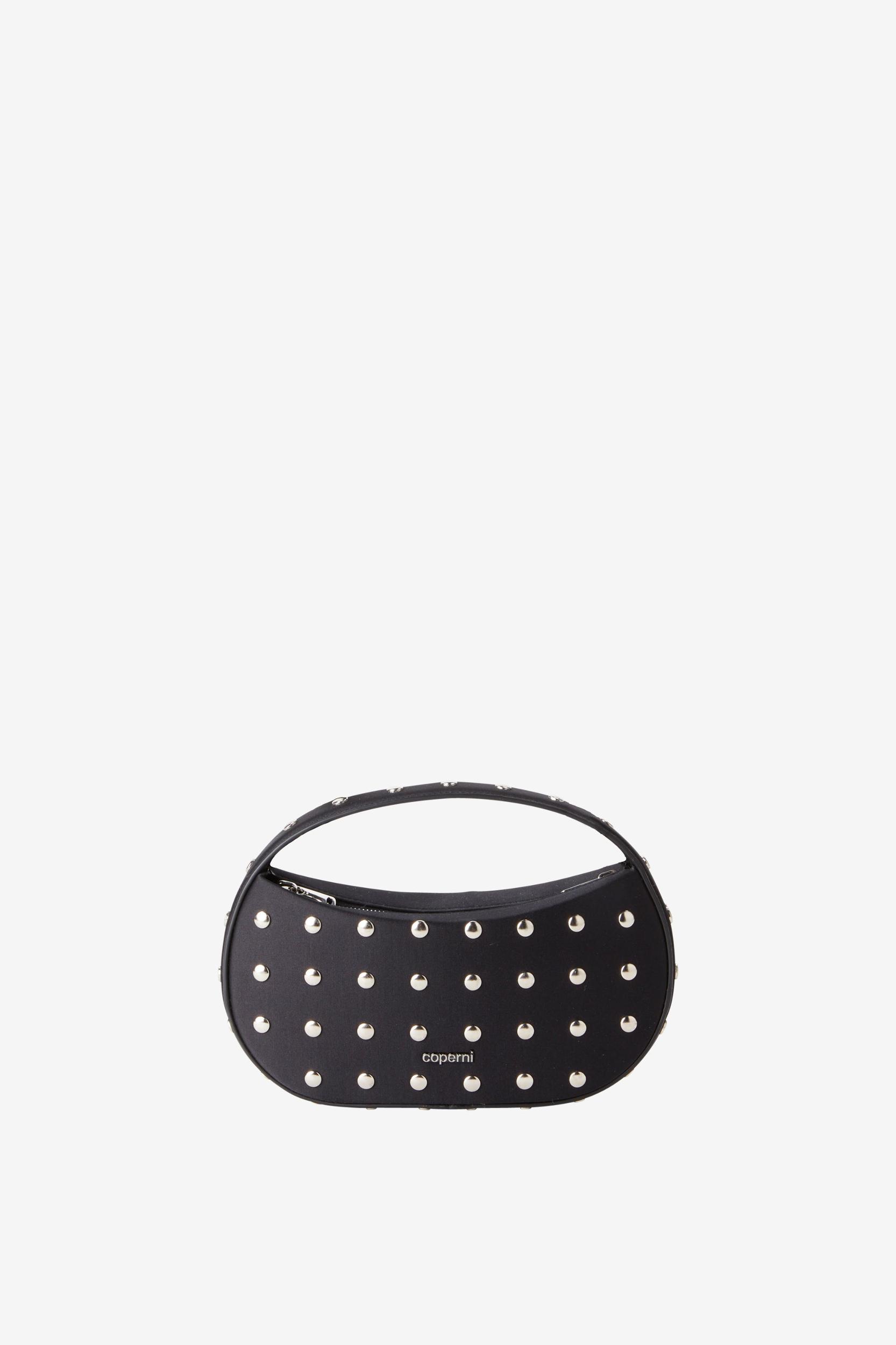 Small handbag with curved contours crafted from prestige Italian black leather with studs.