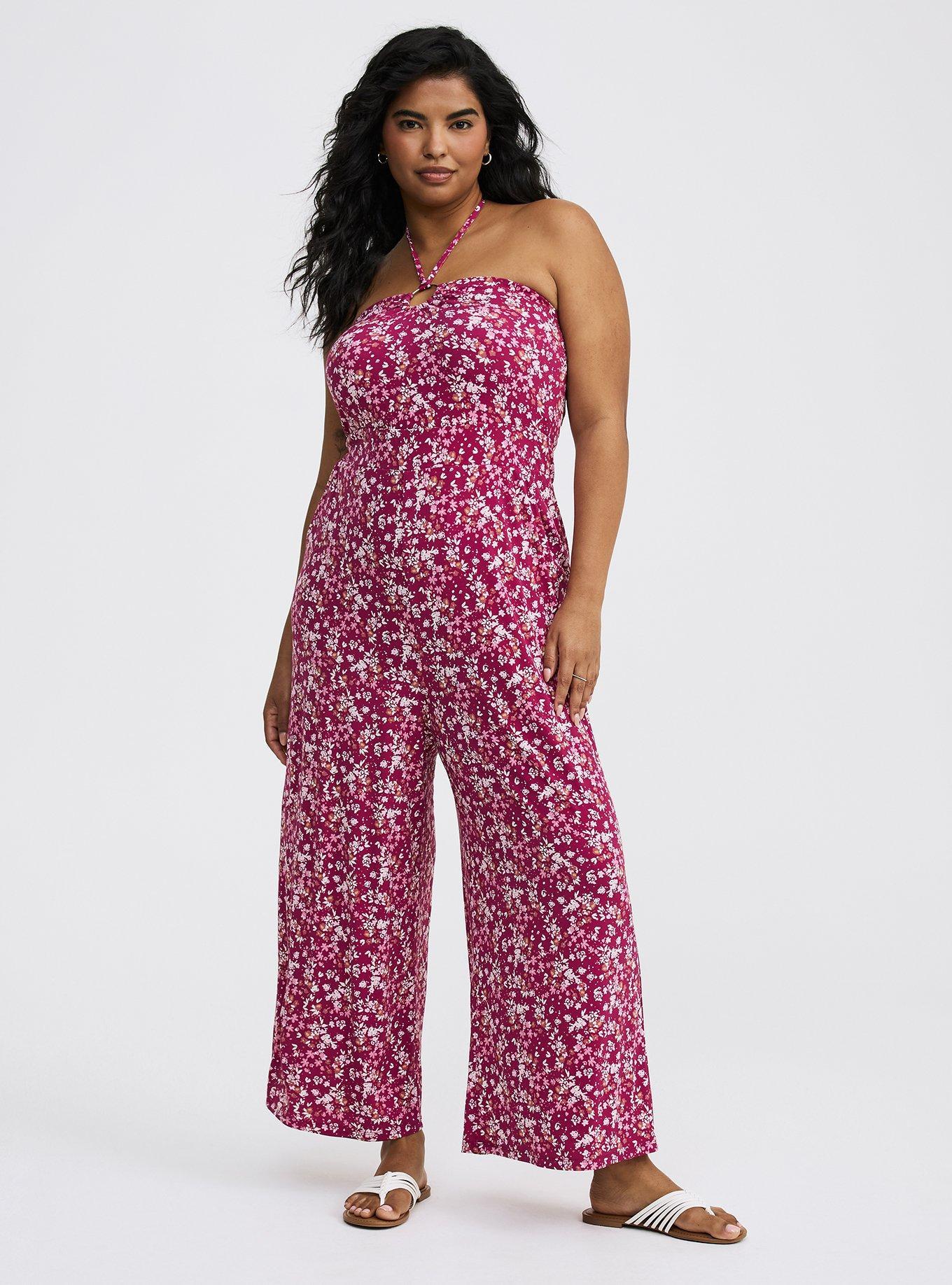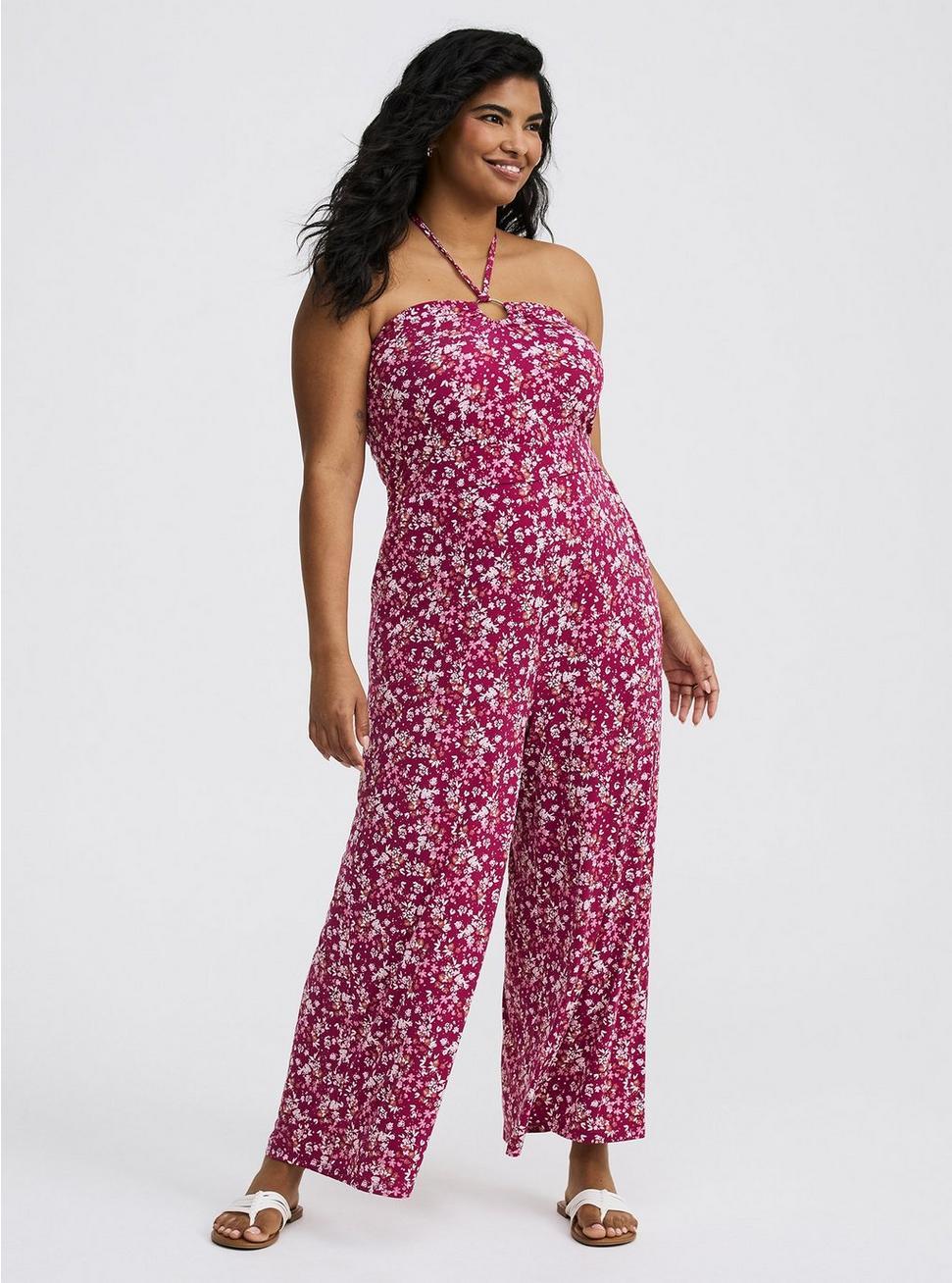 FITJumpsuit silhouette.25'' inseam (size 2).MATERIALS + CAREStudio knit fabric.98% rayon, 2% spandex.Machine wash cold. Line dry.Imported.DETAILSHalter neckline.O-ring detail.Functional pockets.