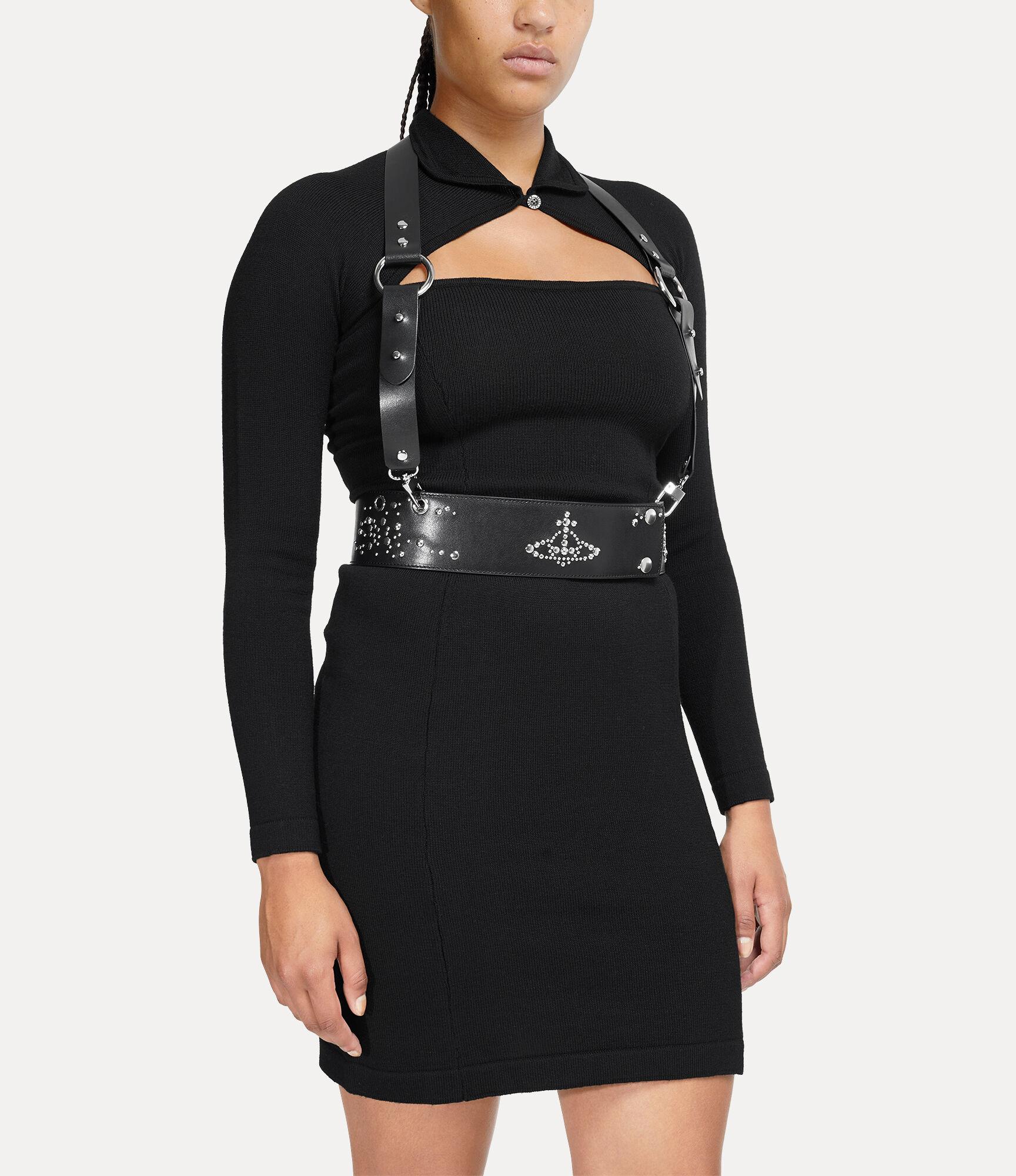 Our Studs harness features bondage-inspired hardware elements, reminiscent of our ‘Erotic Zones' collection from Spring-Summer 1995. The wide waist strap is adorned with intricate stud details, designed to create an orb outline - reflecting Vivienne's vision of taking tradition into the future.