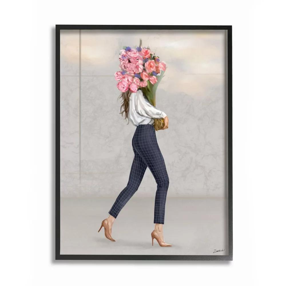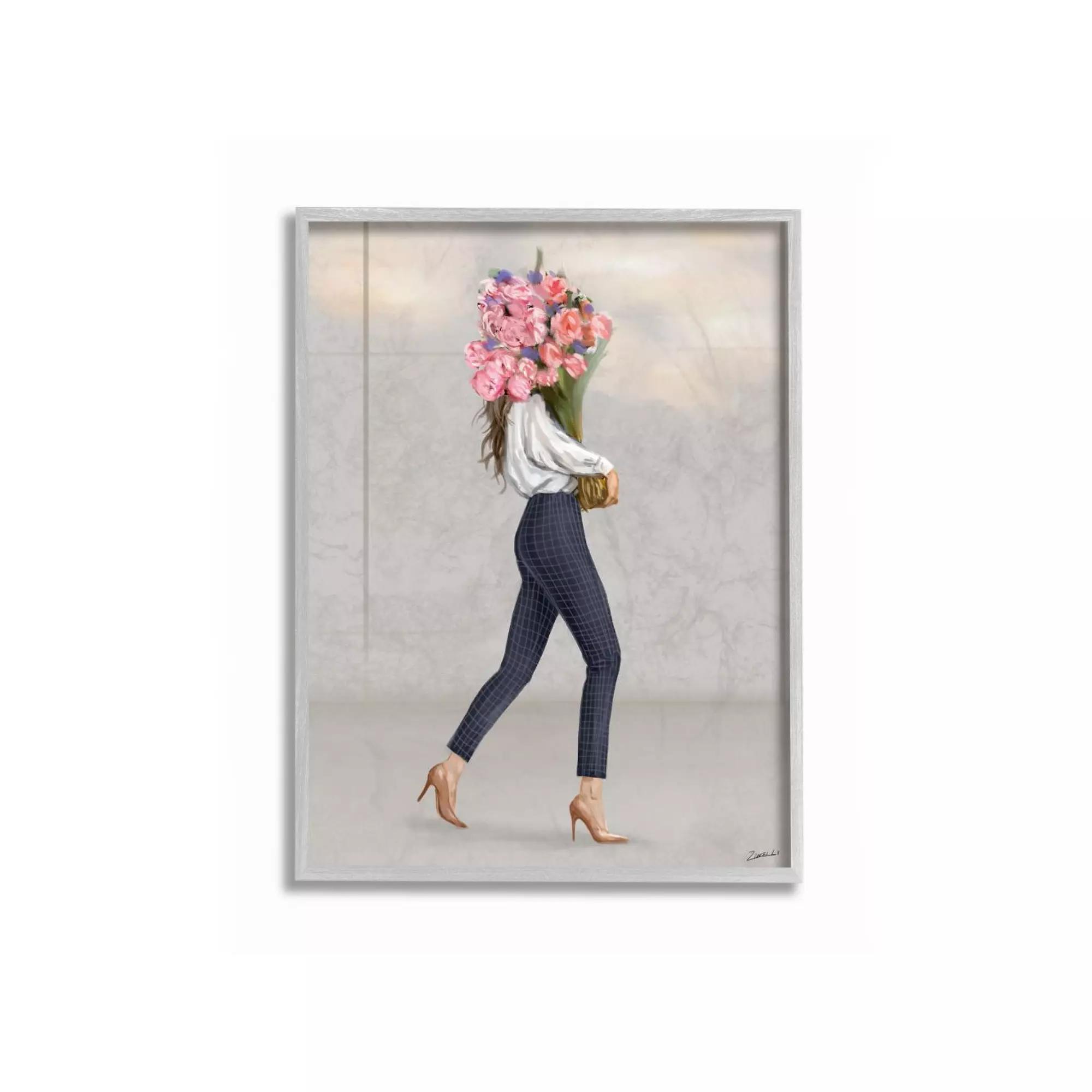 Stupell Home Decor Woman's Figure Metro Fashion Floral Bouquet Glamour Wall Art, Gray