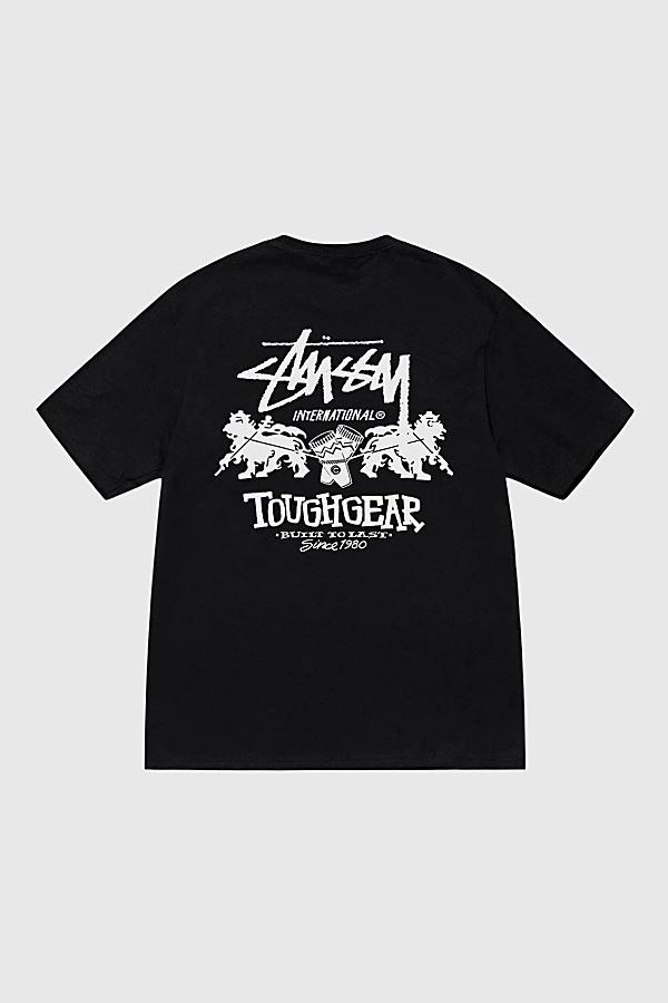 This item is subject to a 15% restocking fee if returned. Classic short-sleeve tee with printed or embroidered graphics. Made for everyday comfort. Features Ribbed crewneck Short sleeves Graphic detail Unisex Content + Care Imported Size + Fit Regular fit Unisex sizing; size up for a looser fit Stussy Tough Gear Int. Tee in Black, Mens at Urban Outfitters