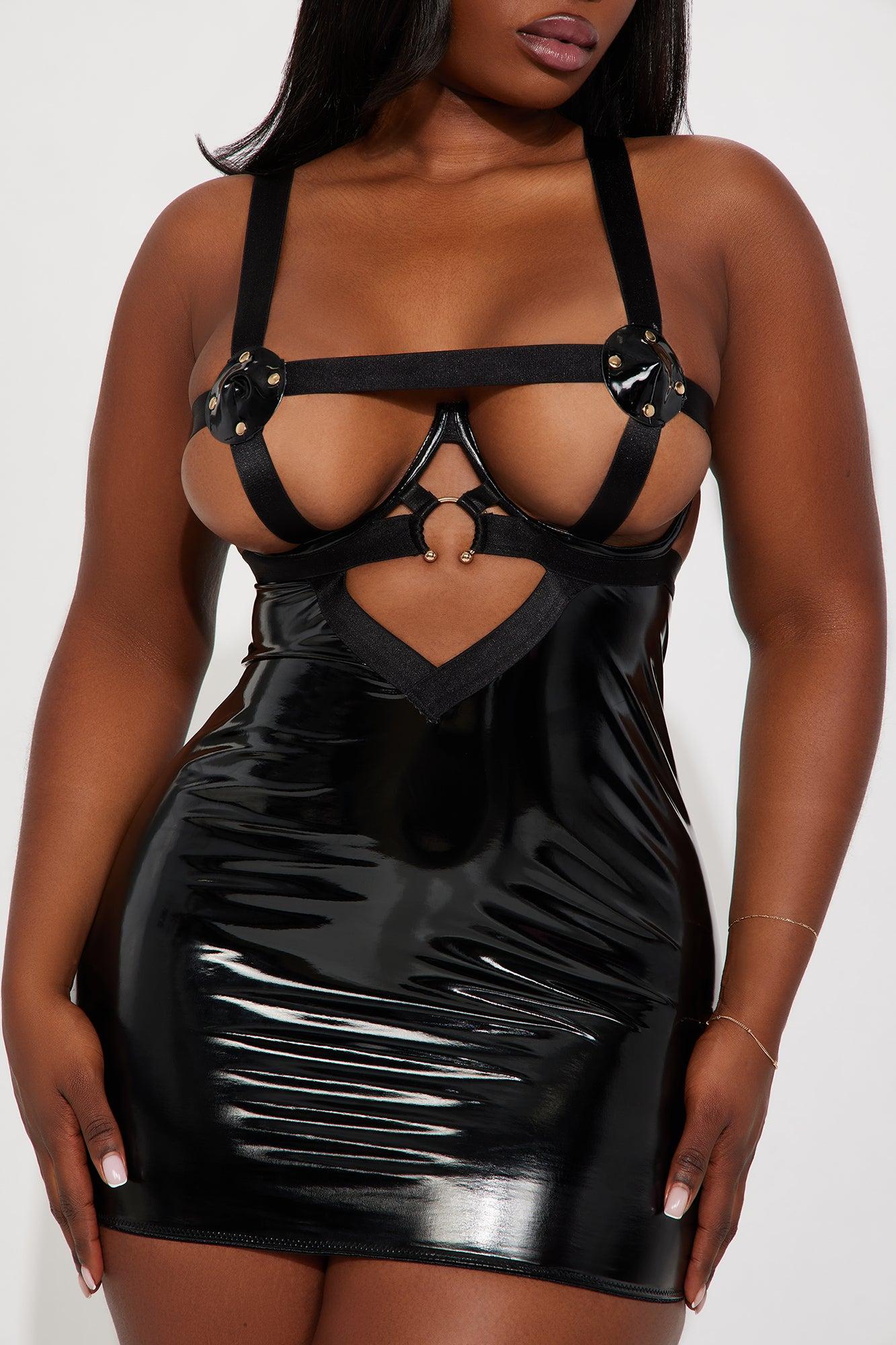 Submit To You Vinyl Open Cup Chemise - Black