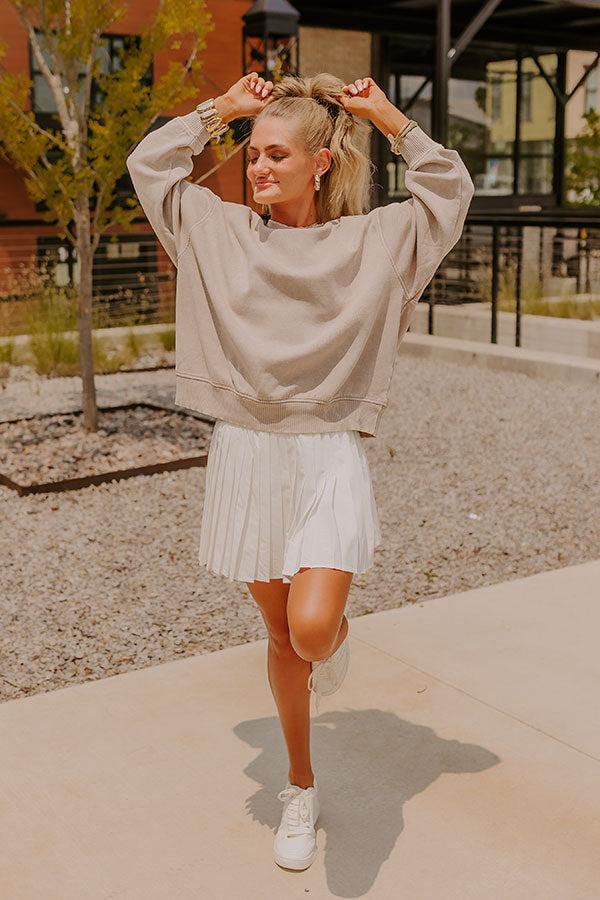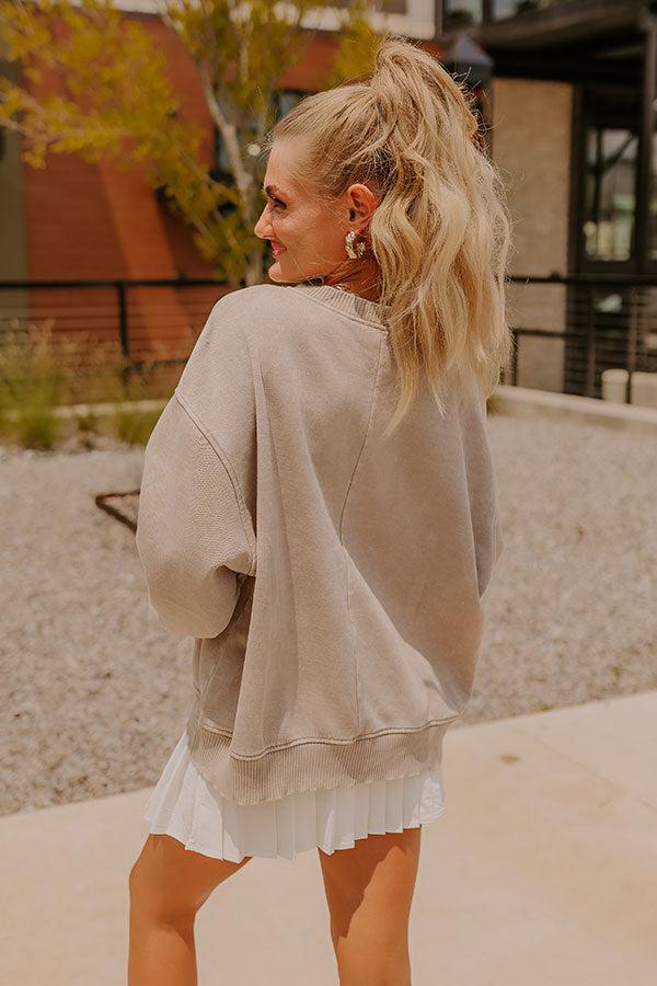 - Whether you are lounging at home or keeping it cozy as you run errands, this sweatshirt is perfect for laid-back style! Its trendy details set it apart from your average sweatshirt. Step up your cool weather wardrobe with this sweet piece! - Soft, unlined sweatshirt material with a mineral wash - A ribbed crew cut neckline with an overlap detail in the front - Long sleeves with ribbed cuffs - A relaxed silhouette that ends in a straight hemline with a ribbed texture