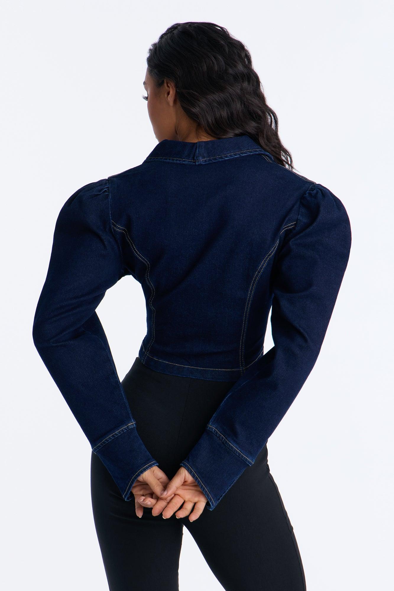 Available In Dark Wash. Denim Jacket Puff Sleeve Collar Button Closure Denim Stretch Disclaimer: Due To The Specialized Wash, Each Garment Is Unique. 68% Cotton 30% Polyester 2% Spandex Imported California Proposition 65WARNING: Cancer and Reproductive Harm - www.P65Warnings.ca.gov.