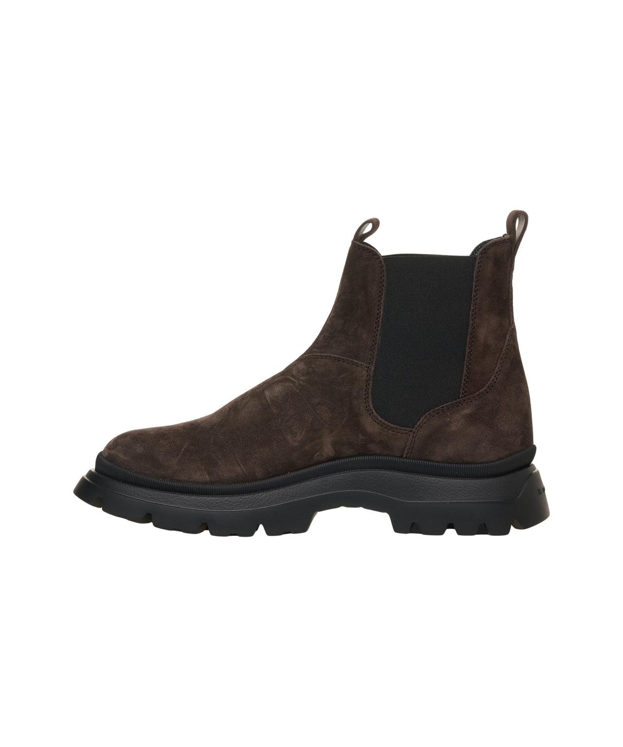 The exquisite 'H673' boots by Hogan are crafted from luxurious suede leather, known for its soft touch. Elastic side inserts and practical pull tabs on the shaft ensure easy on and off. The robust profile sole underlines the striking character of this versatile model and provides optimal grip.Suede leatherBootsProfile soleRaised soleRound shoe shapeHoganPull loopsTextile insert