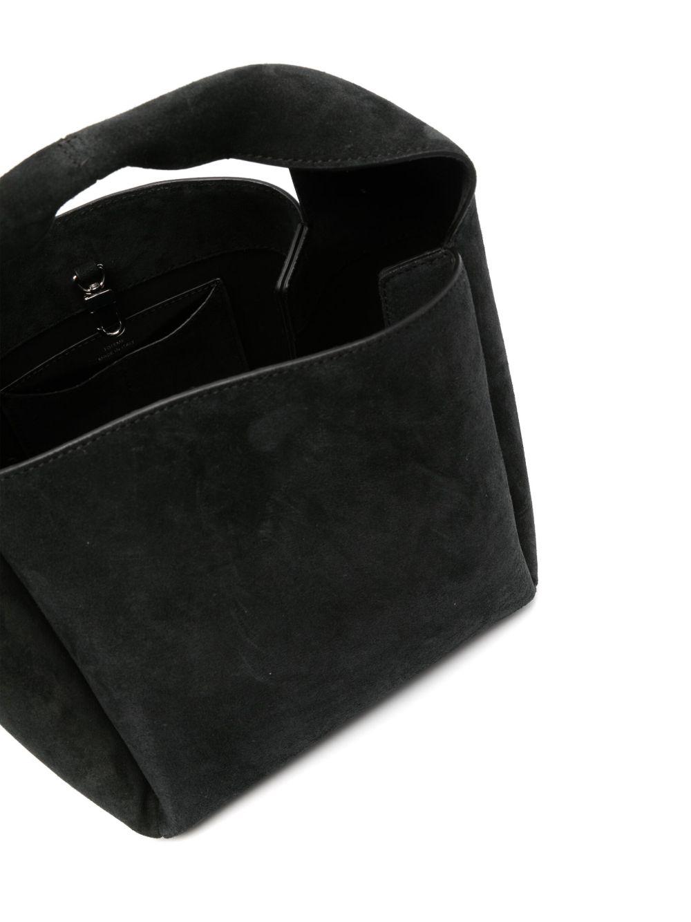 TOTEME suede bucket bag | Black | black | calf suede | bucket body | lobster claw fastening | single top handle | adjustable detachable shoulder strap | main compartment | internal slip pocket | debossed internal logo | metal feet | silver-tone hardware | This piece comes complete with a protective dust bag. | Calf Suede | Bucket Bags | Bags | Women