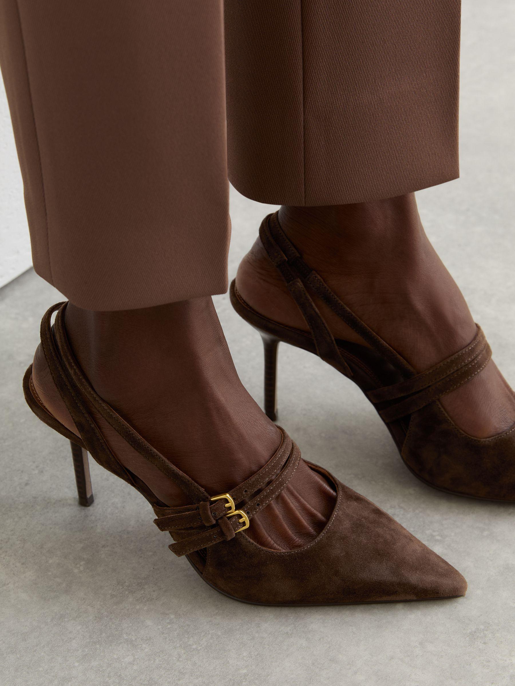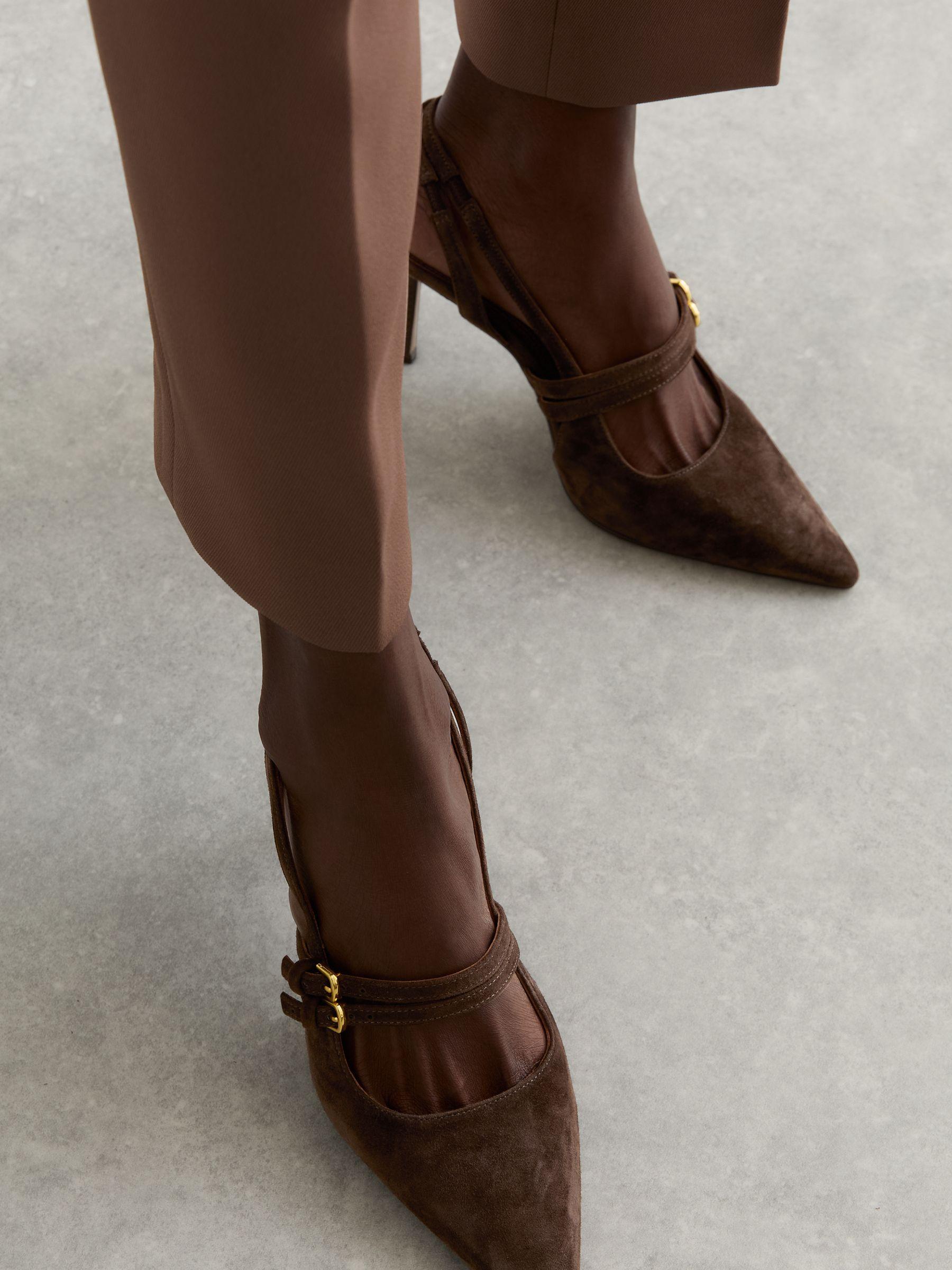 Suede Buckle-Strap Court Shoes in Chocolate
