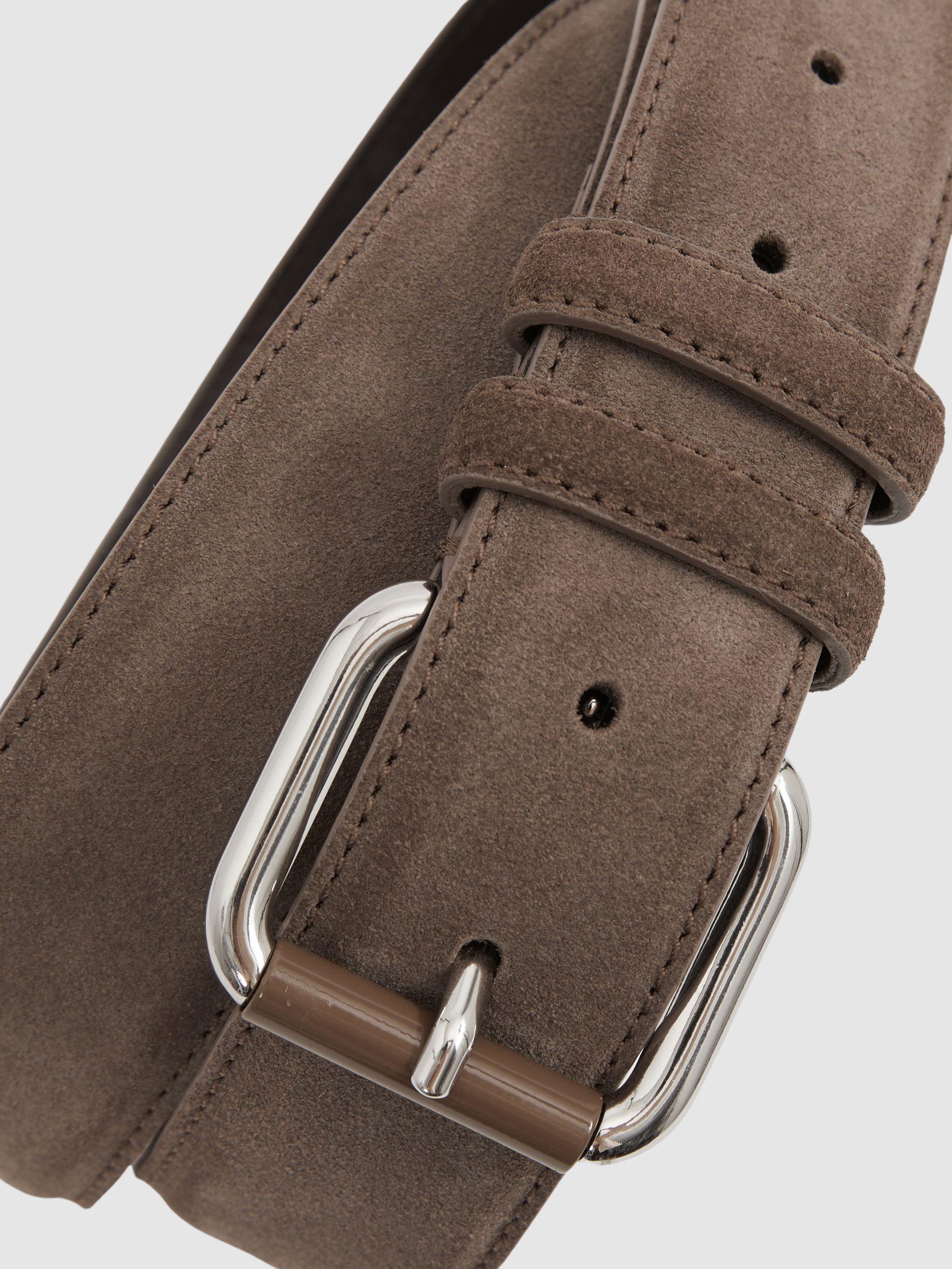 Suede Roller Bar Belt in Taupe Brown