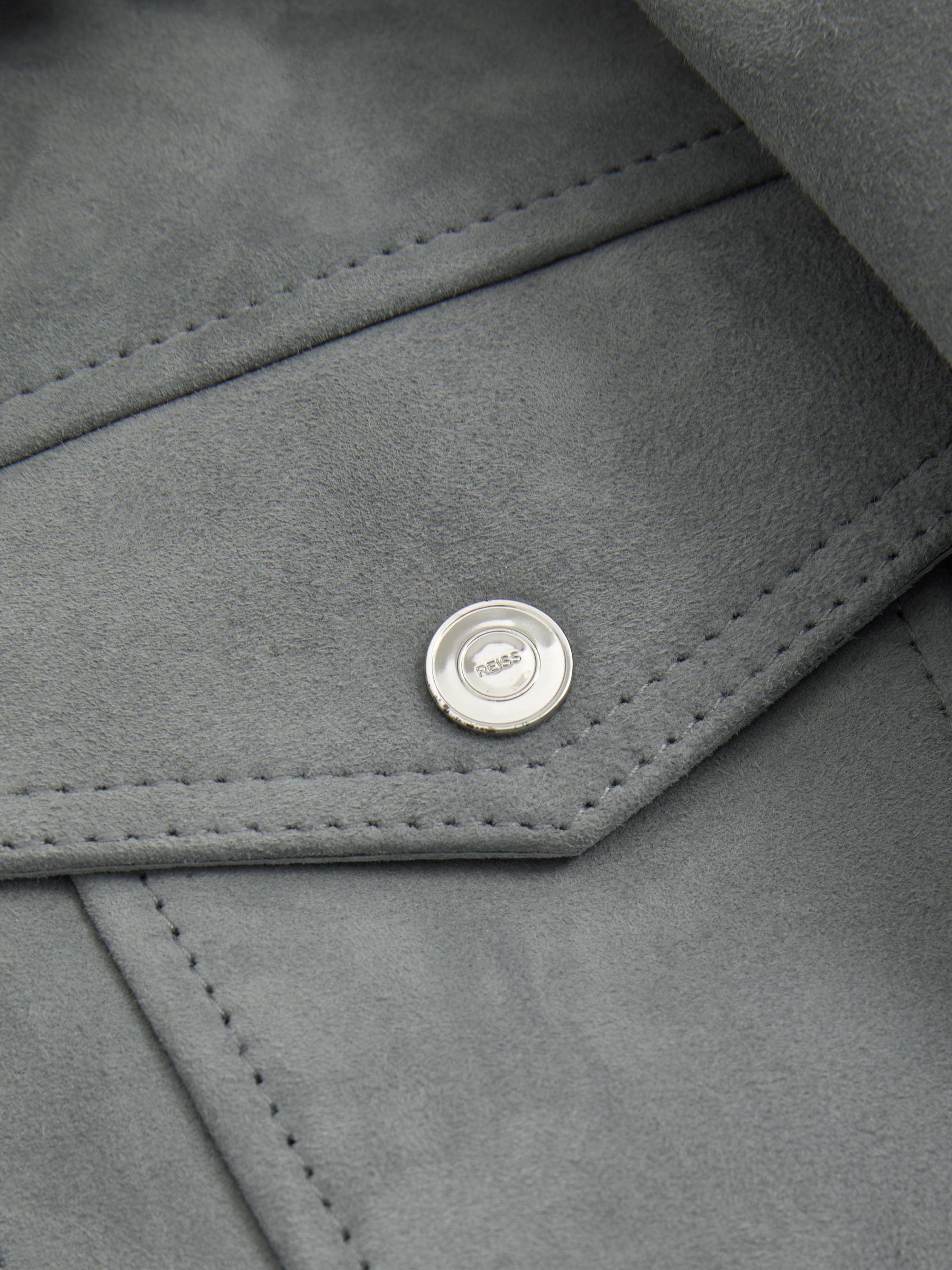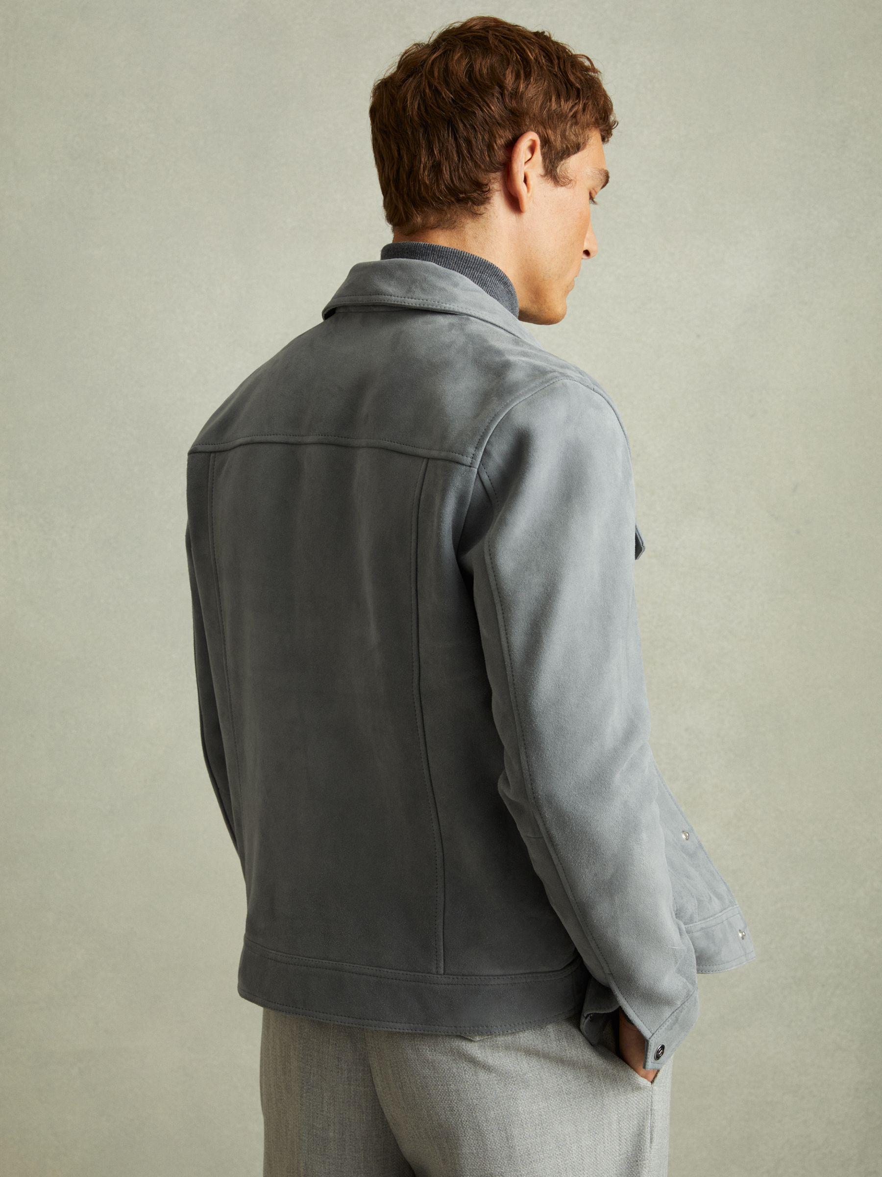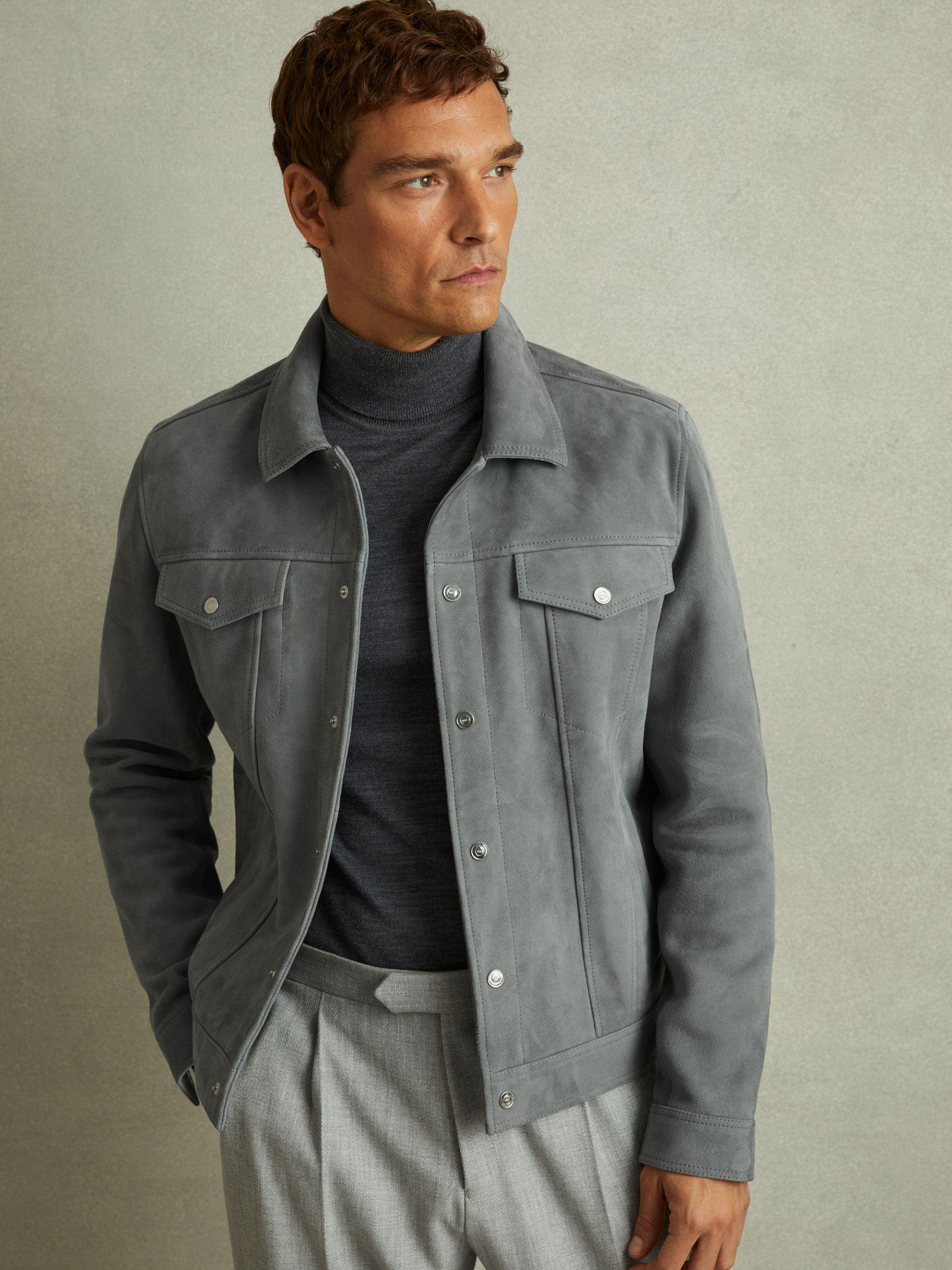 The Eden jacket is made from luxe suede with a premium heavy weight and a buttery feel against the skin. Designed in a classic trucker shape, it sits relaxed against the body, fastening with branded press studs. 100% suede. Press-stud front closure. Press-stud chest and side pockets. Internal zipped pocket. Lined. The model is wearing a size M. Measurements of model: 6ft 2" / 187cm.