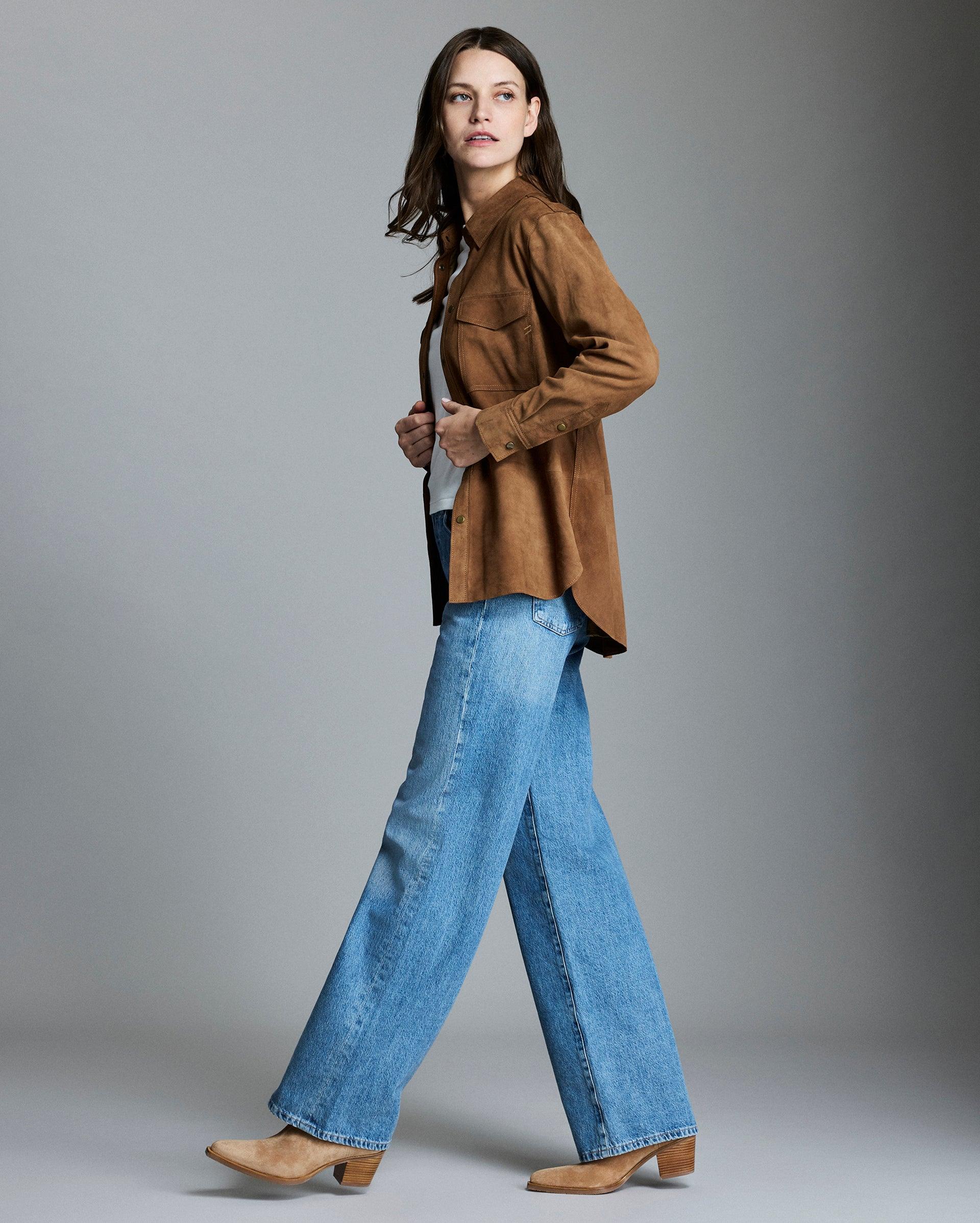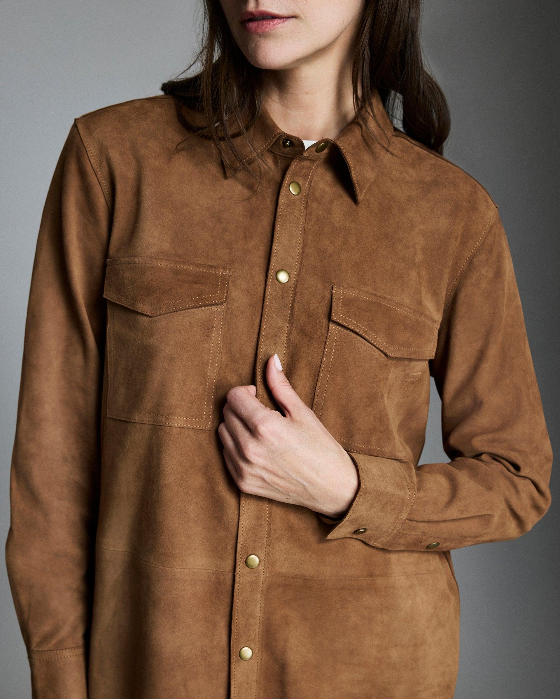 Inspired by our bestselling Savoy Suede Workshirt, this shirt offers the same authentic details (like supple goat suede, antique brass snaps and western-style chest pockets) but in a more feminine silhouette, and with our custom pelican lining. But don’t let its soft hand fool you; this isn’t a piece to be babied. The