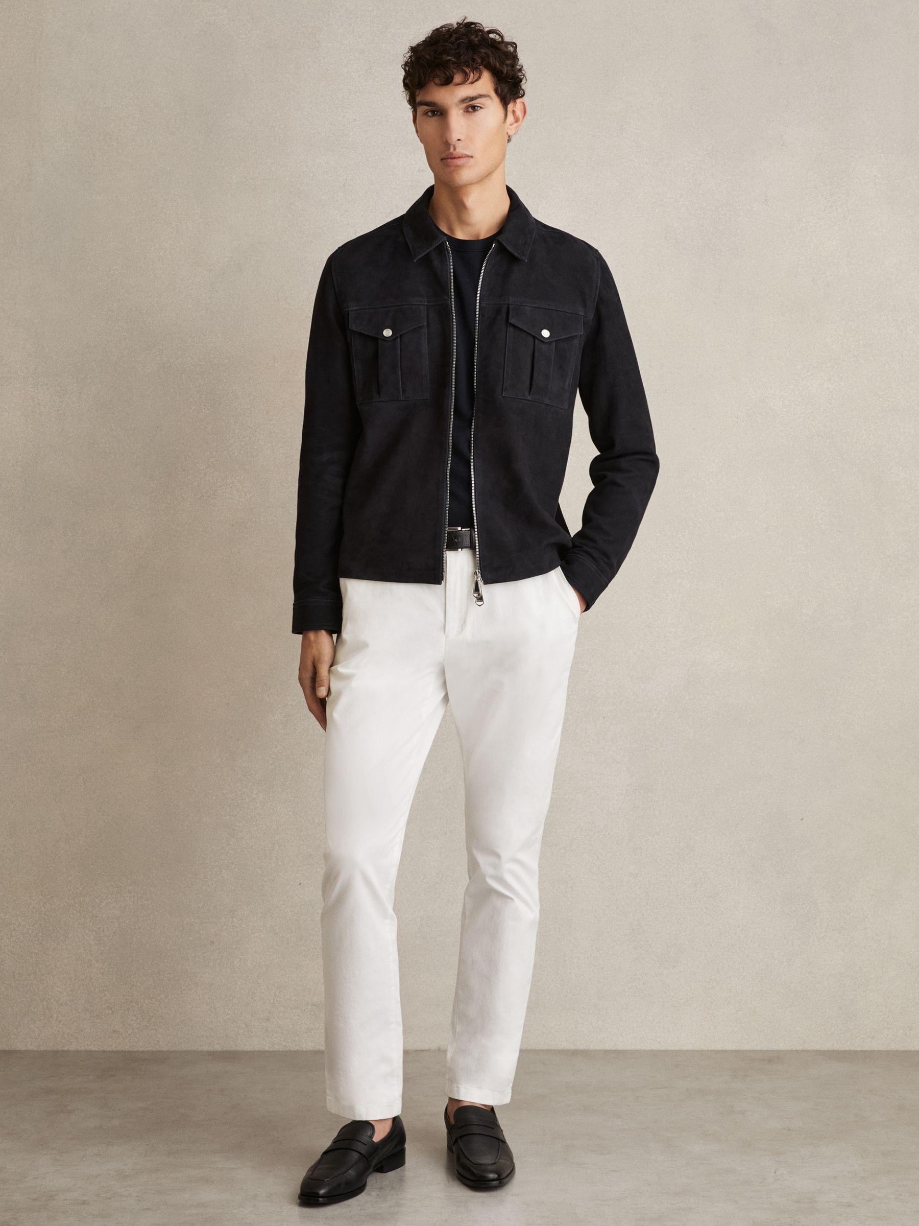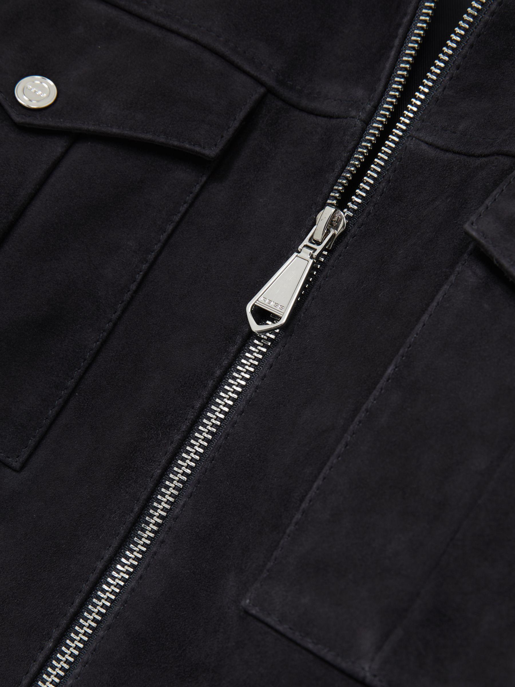 Soft suede brings a refined touch to the Belle shirt jacket, making it a standout layering piece. The dual front zip offers versatility for styling, whilst the pleated chest pockets add a utilitarian edge, perfectly balancing style with functionality. 100% suede. Press-stud pockets with pleats. Press-stud cuffs. Lined. Dual front zip.