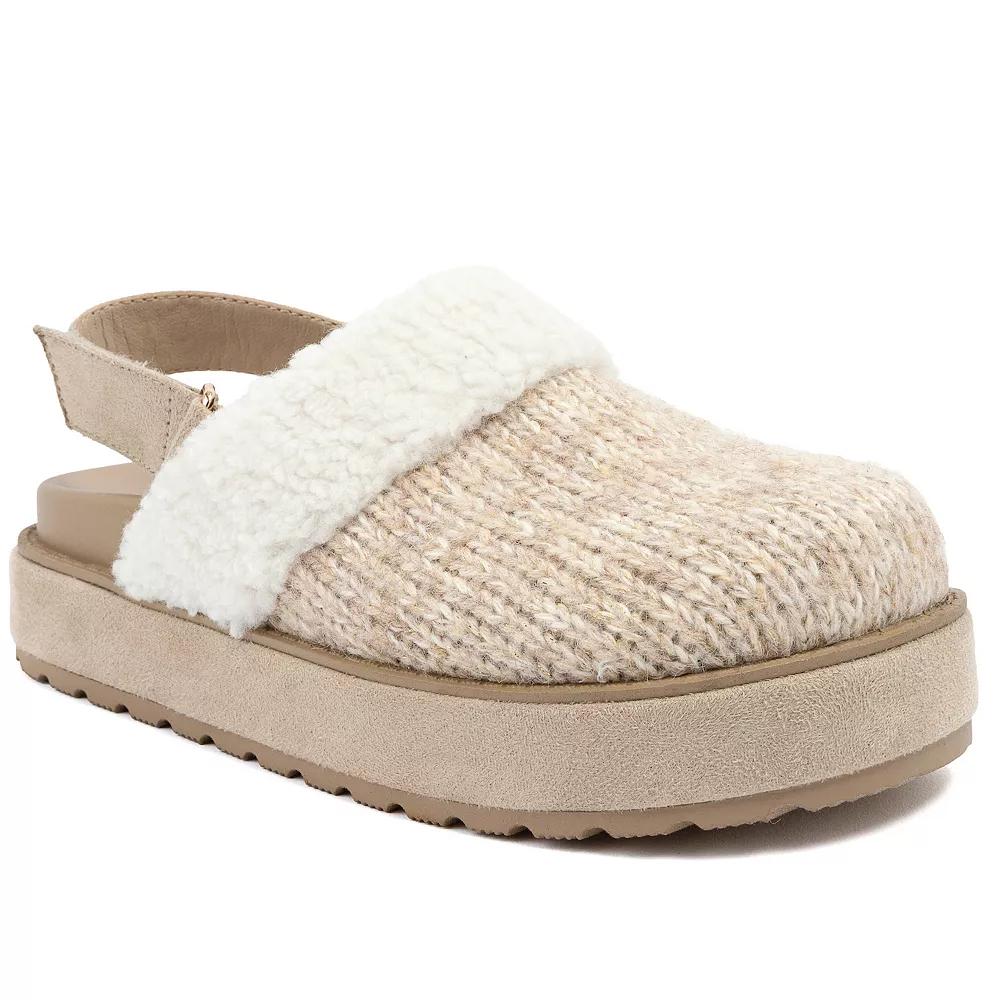 Embrace effortless chic with sugar's stylish slip-on flats that seamlessly blend comfort and elegance. Perfect for brunch dates or casual strolls, these versatile shoes will be your go-to for a laid-back yet polished look. Click this FOOTWEAR GUIDE to find the perfect fit and more! - https://www.kohls.com/feature/shoesizeguide.jsp. FEATURES: Stylish slip-on design for easy wear, Soft fur detailing for added comfort. DETAILS: Round toe, Hook-and-loop tape closure, 1.13 in. heel height, Flex groove outsole. MATERIAL & CARE: Manmade fabric upper, Foam footbed, Manmade fabric and manmade leather lining, Manmade rubber midsole and outsole, Spot clean, Imported. Size: 7 Med. Color: Natural Sweater. Gender: female. Age Group: adult. Material: SYNTHETIC.