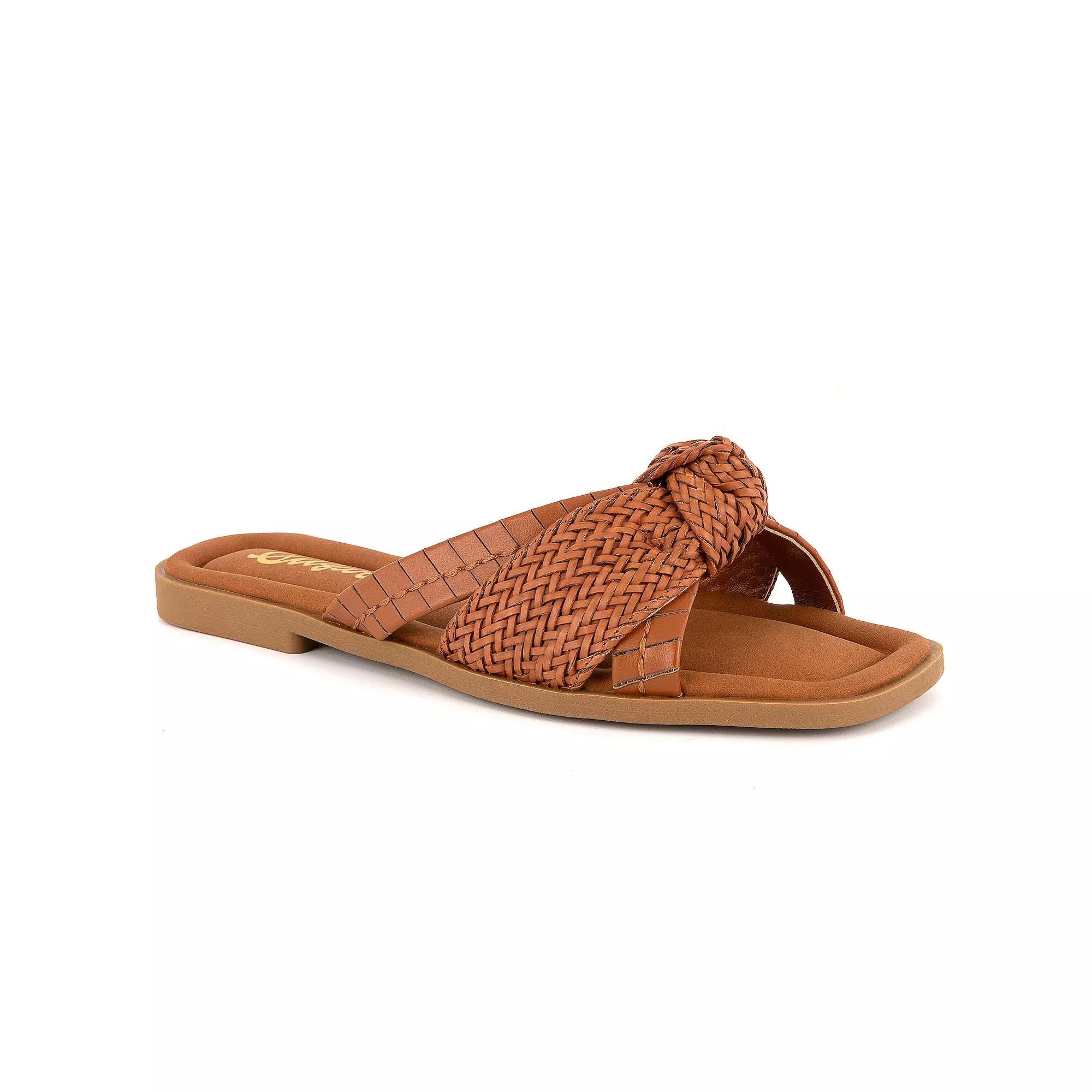 Discover the perfect blend of comfort and chic with the Sugar Serona Women's Flat Sandals, designed to elevate your casual look while ensuring all-day ease. With their stylish open-toe design and versatile appeal, these sandals are your go-to choice for any summer outing. Click this FOOTWEAR GUIDE to find the perfect fit and more! - https://www.kohls.com/feature/shoesizeguide.jsp. DETAILS: Woven polyurethane upper, Polyurethane lining, TPR outsole, Open toe, Slip-on, Foam footbed, Flat, Spot clean, Imported. Size: 9.5. Color: Cognac Woven Pu. Gender: female. Age Group: adult. Material: SYNTHETIC.