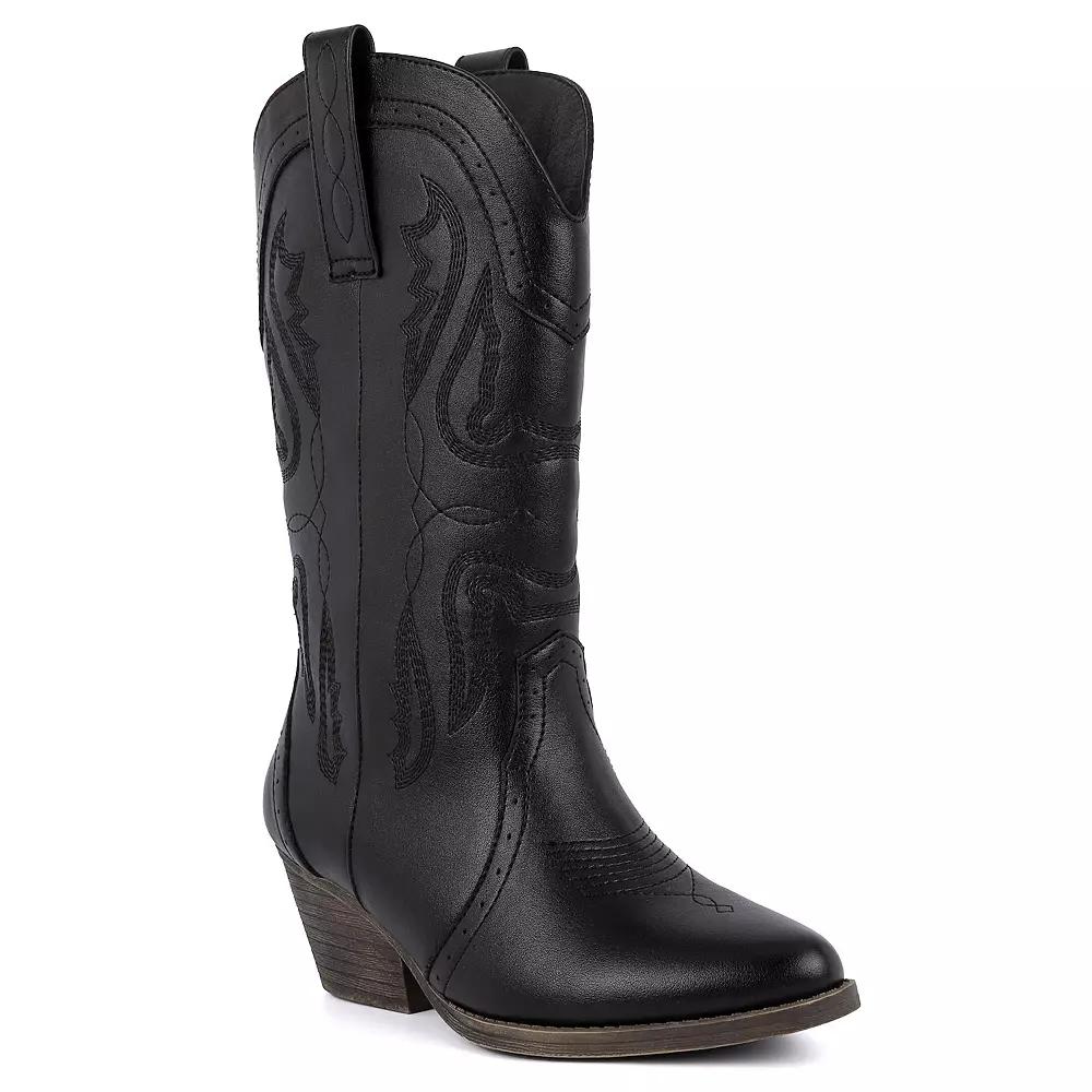 Step up your style in these Tammy boots from sugar. Click this FOOTWEAR GUIDE to find the perfect fit and more! - https://www.kohls.com/feature/shoesizeguide.jsp. BOOT FEATURES: Classic design, Block heel. BOOT CONSTRUCTION: Faux suede upper, Manmade lining, TPR outsole. BOOT DETAILS: Pointed toe, Pull-on, Memory foam footbed, 2-in. heel, 8-in. shaft, 13-in. circumference. Size: 9. Color: Black. Gender: female. Age Group: adult. Material: OTHER MATERIAL.