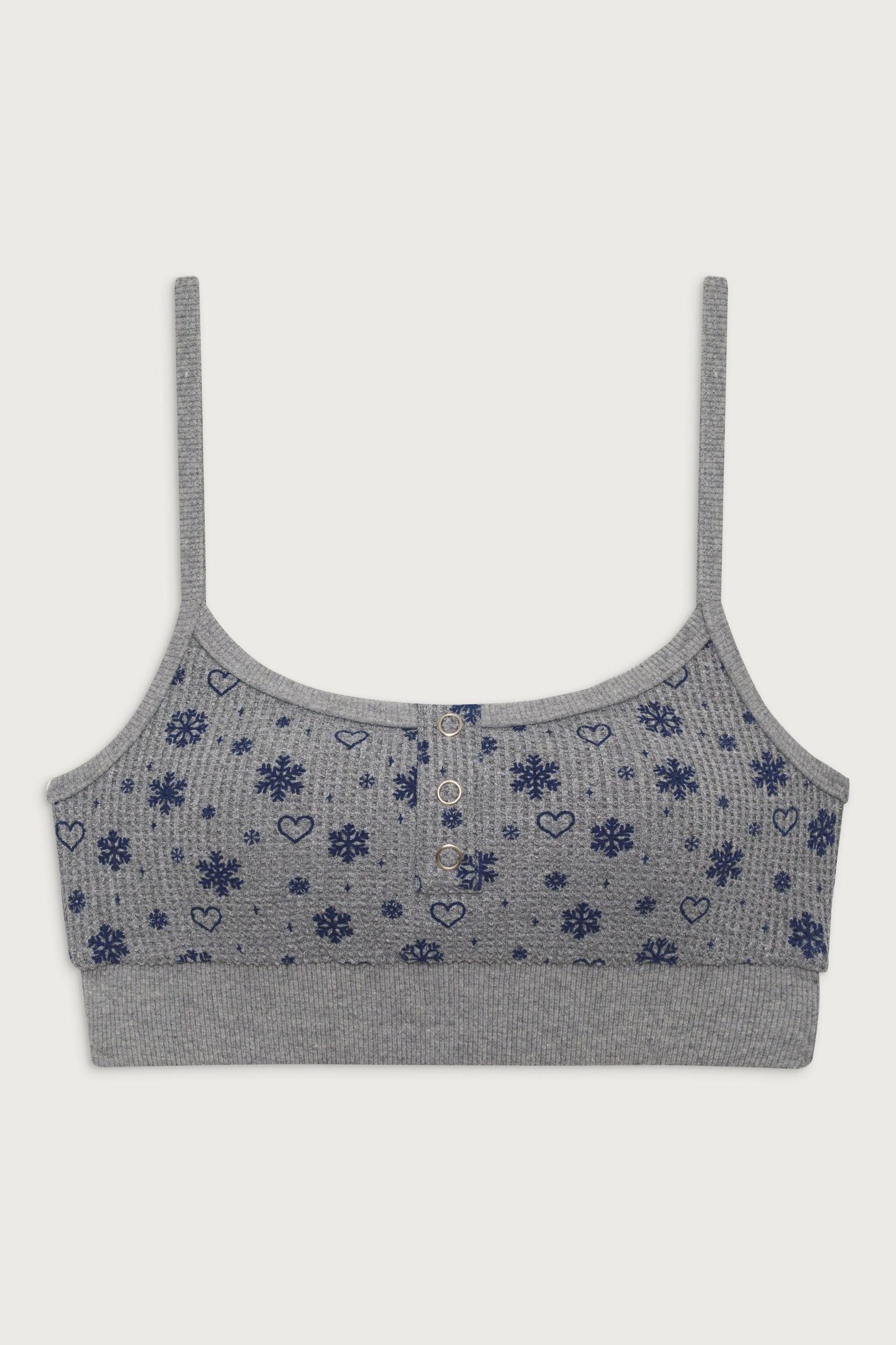 Introducing your coziest new undergarment. Sugar is a thermal top with waffle fabric and a bralette-style silhouette. Sugar features our newest snowflake 'Apres Ski' print, ribbed accents, buttons on the front, and adjustable shoulder straps for added comfort. Pair the Sugar top with the matching Noelle legging, grab a cup of coffee, and lounge by the fire all day. Fabric 87% Nylon + 13% Spandex Waffle Fabric Adjustable Straps Model Size & Fit This style runs true to size Olivia is wearing a size Small Height 5' 7” (170cm) Bust 36” (91cm), Waist 25" (63.5cm), Hips 34" (86.36cm)