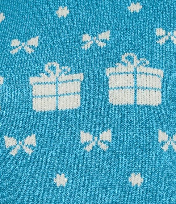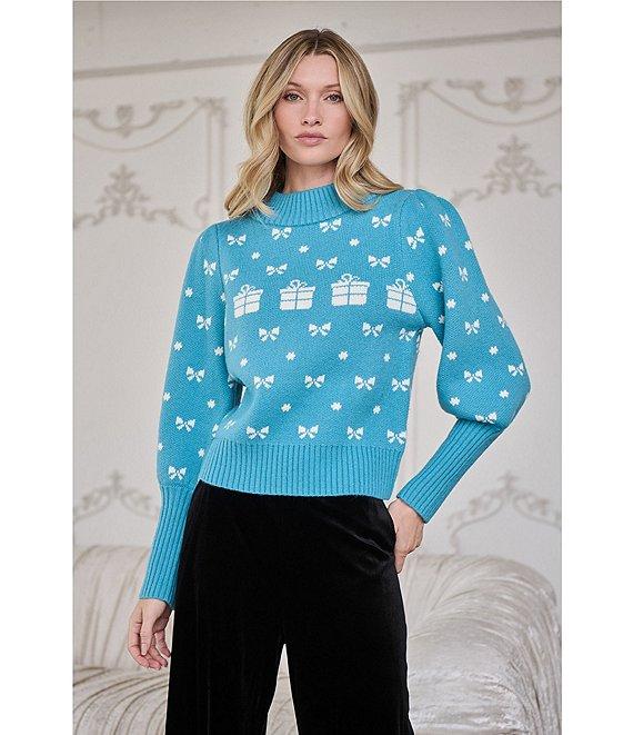 Sugarlips Agnes Bow and Gift Box Print Mock Neck Long Sleeve Knit Sweater