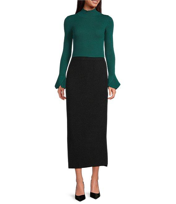 Sugarlips Carthay Coordinating High Waisted Ribbed Knit Side Slit Sweater Midi Skirt