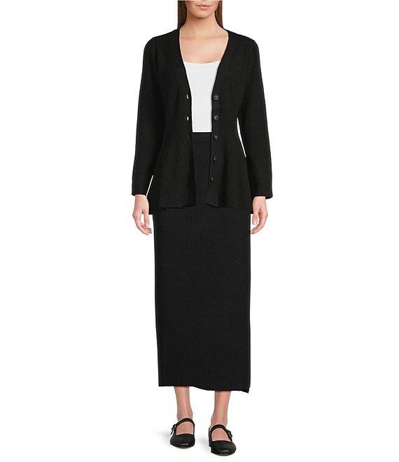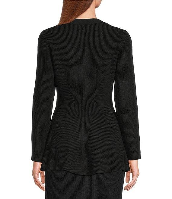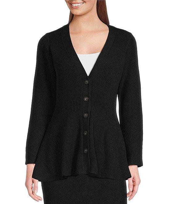 From Sugarlips, this cardigan features: Sweater ribbed knit fabrication Peplum silhouette V-neckline Long sleeves Fit and flare fit Unlined Peplum flared hemline Button front closure Approx. 24.5" length Viscose/polyester/polyamide Hand wash Imported.