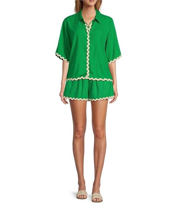 From Sugarlips, these shorts feature: High waisted Pull-on construction Rick rack trim at hem detail Side seam pocket detail Approx. 2.25" inseam, 13" length Rayon/linen/polyester Hand wash Imported.