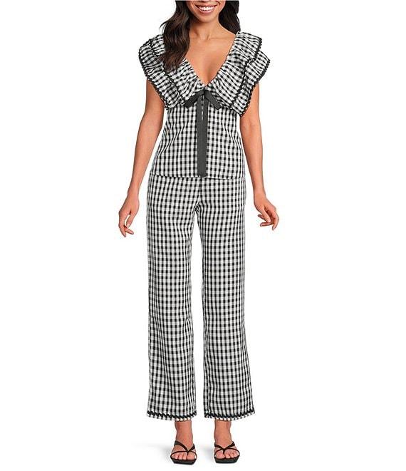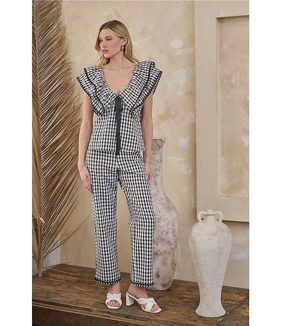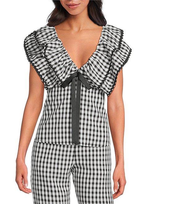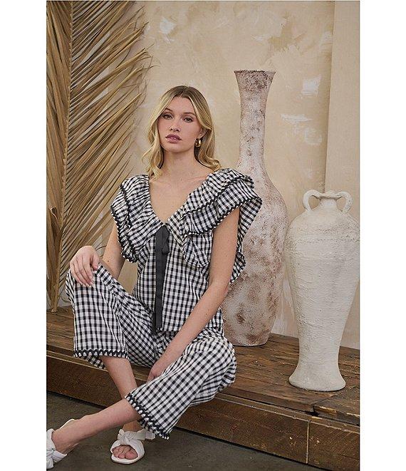 Sugarlips Dover Gingham Leot Ruffle V-Neck Cap Sleeve Babydoll Coordinating Top