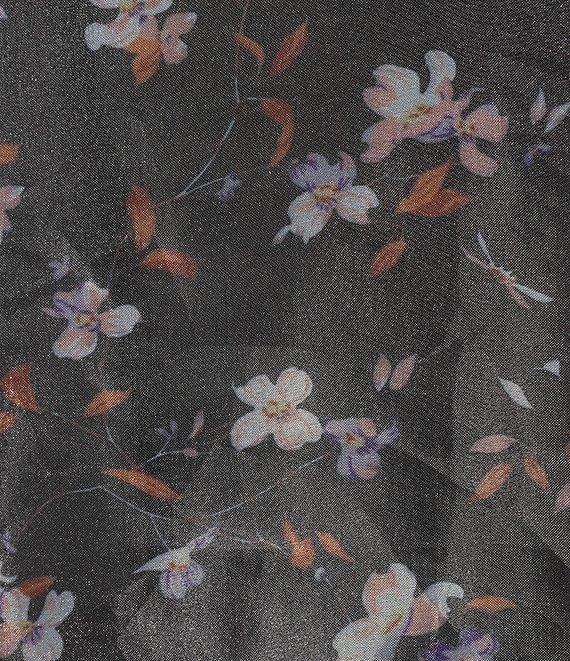 Sugarlips Floral Printed Organza Mock Neck Double Ruffle Short Sleeve Mini Dress