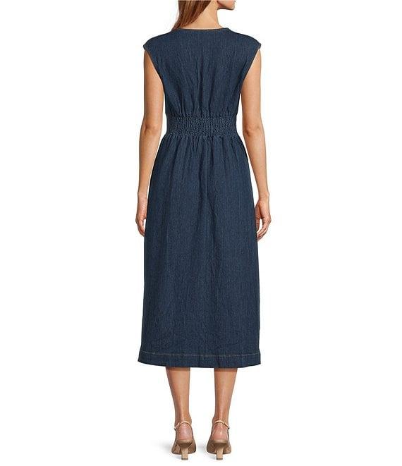 Sugarlips Gabriella Lula Stretch Denim V-Neck Sleeveless Smocked Midi Dress