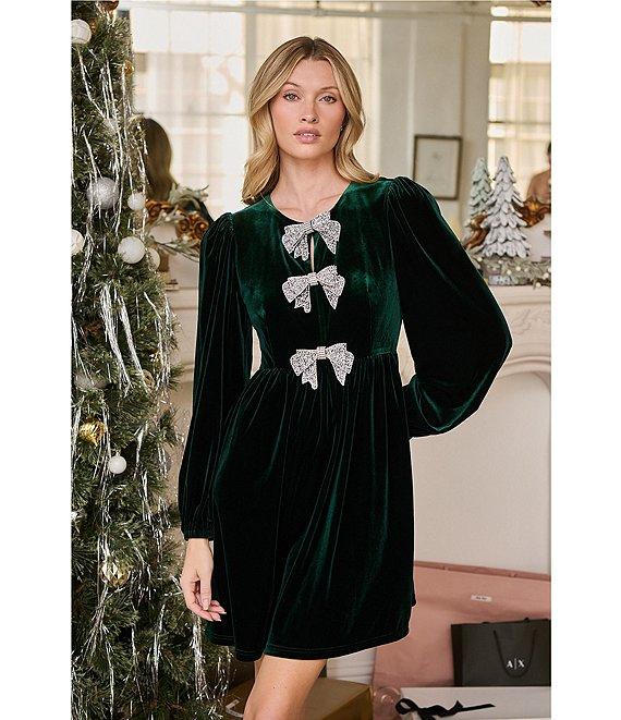 Sugarlips Glow Bow Velvet Crew Neck Long Sleeve Mini Dress